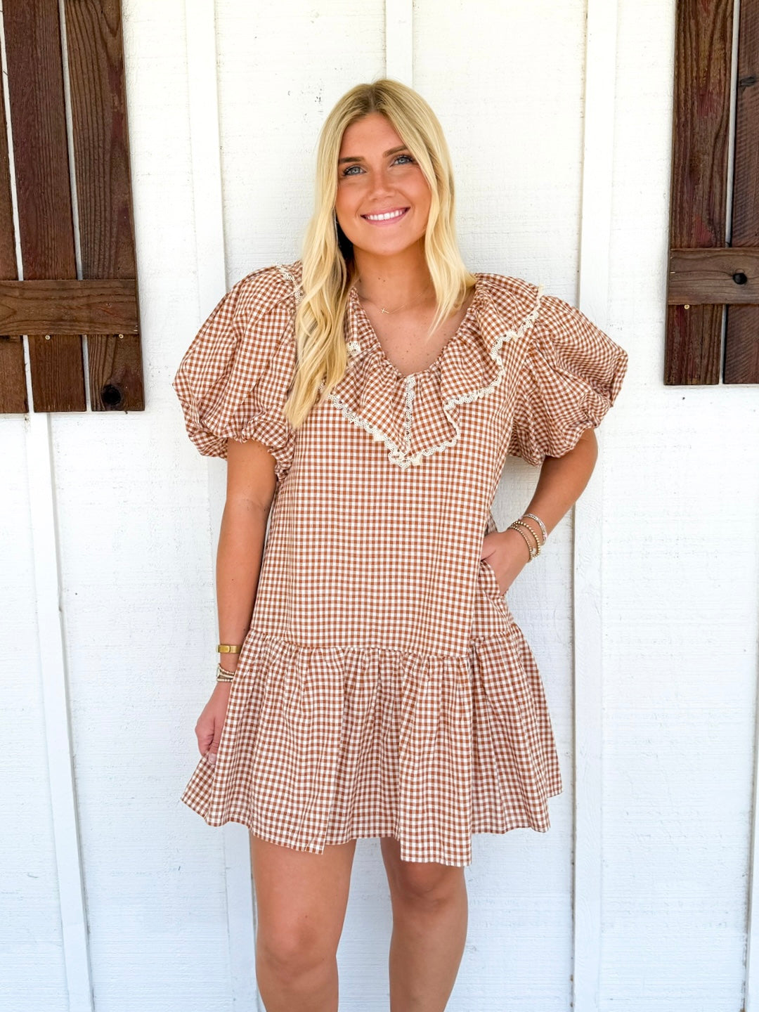 The Hathaway Dress brings a flirty twist to classic gingham with its playful tie detail that cinches the waist just right. Perfect for sunny days and spontaneous adventures, this mini dress combines comfort with a fun, feminine silhouette that’s easy to wear from brunch to backyard parties. Let your style shine with a touch of charm and effortless flair.