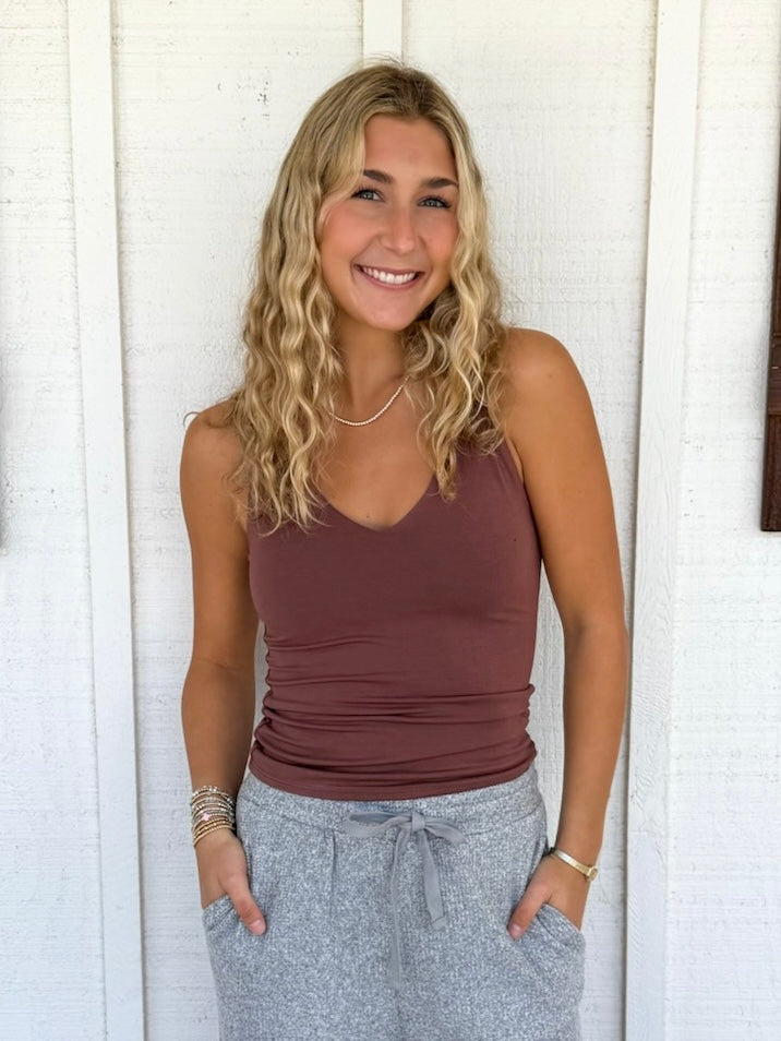 The Moroney Top is a full-length, sleeveless knit tank designed for comfort and style. Featuring a flattering V-neckline and double-lined construction, it offers a soft, stretchy fit that moves with you. This casual classic combines effortless elegance with everyday wearability, making it an essential piece for any wardrobe.