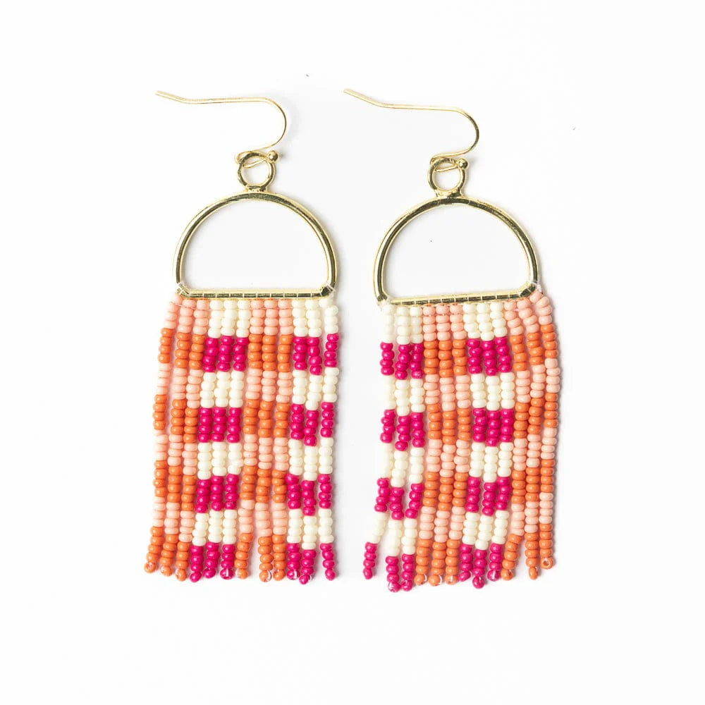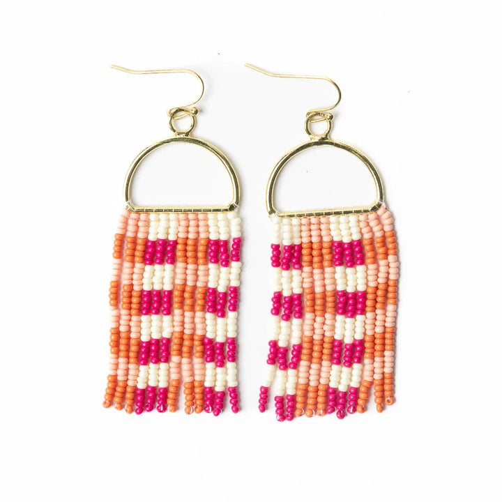 You are sure to be retro-cool in these checkered fringe earrings! Blush and red seed bead earrings will surely bring a fun pop of color to your next work fit! Channel your inner spunk with these lightweight earrings.