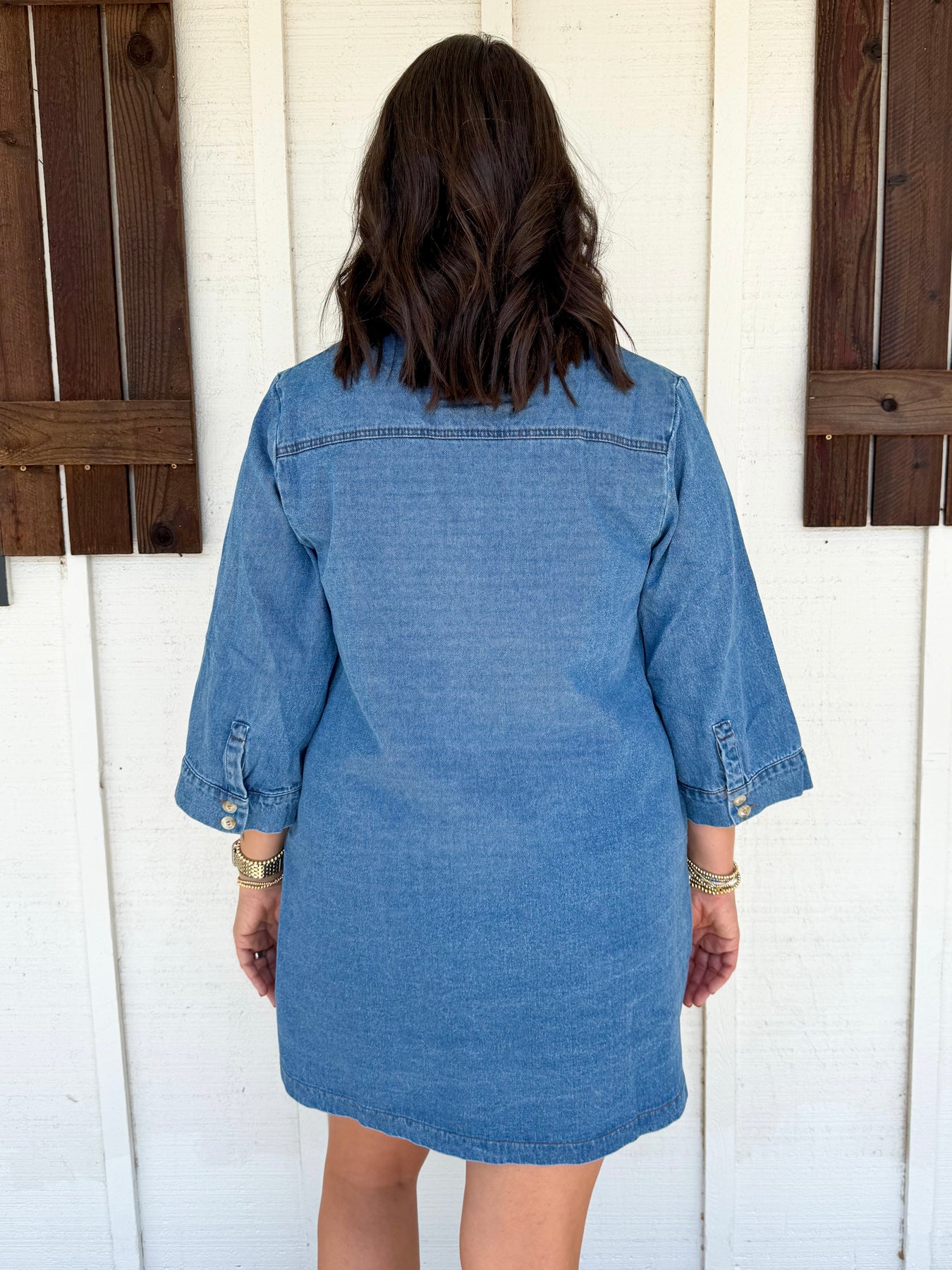 The Rylianna Dress is a playful ¾ sleeve mini that’s as functional as it is fun. Featuring front buttons and chest patch pockets, it adds a charming touch while keeping essentials close. A discreet side pocket and back sleeve button details give it extra personality. Crafted from medium-weight woven fabric, this unlined, non-sheer dress keeps you comfortable and effortlessly stylish wherever you go.