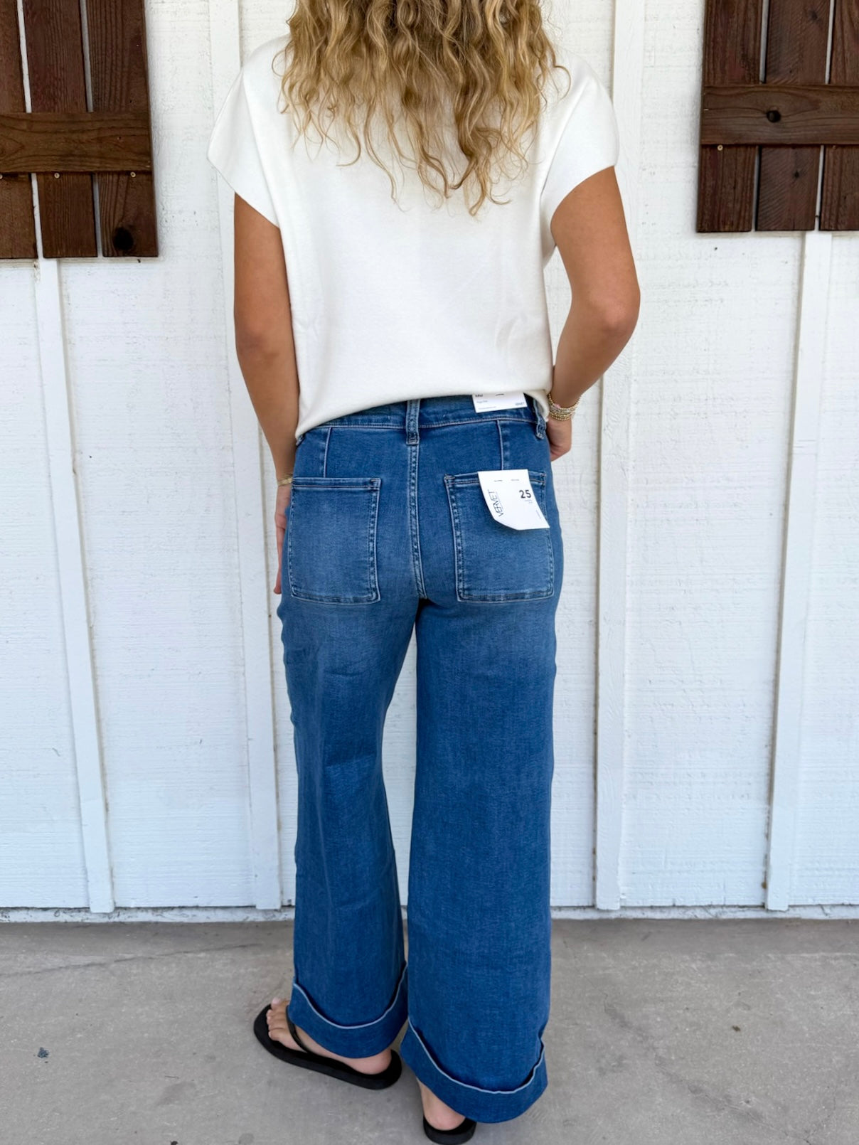 Step into style and comfort with The Enviably Jeans! These high-rise beauties hug your waist just right, while the comfort stretch denim moves with you all day. With a trendy double cuff hem and a baggy, wide-leg fit, they bring playful vibes to any outfit. Perfectly cropped, these jeans are ready to pair with your favorite sneakers or boots for an effortlessly cool look.