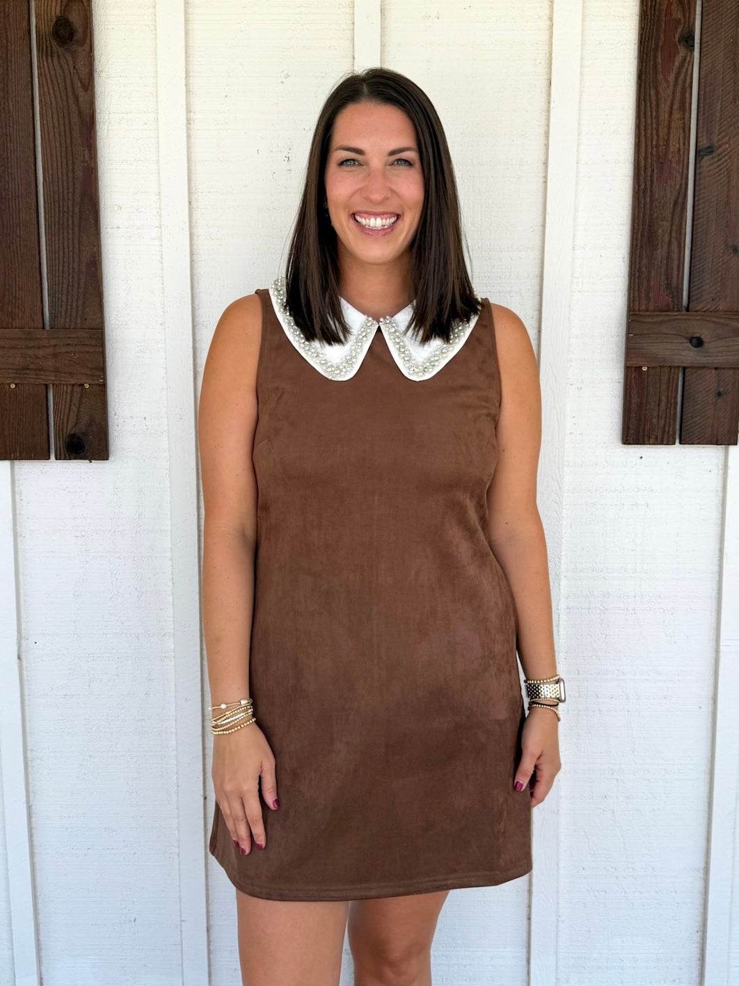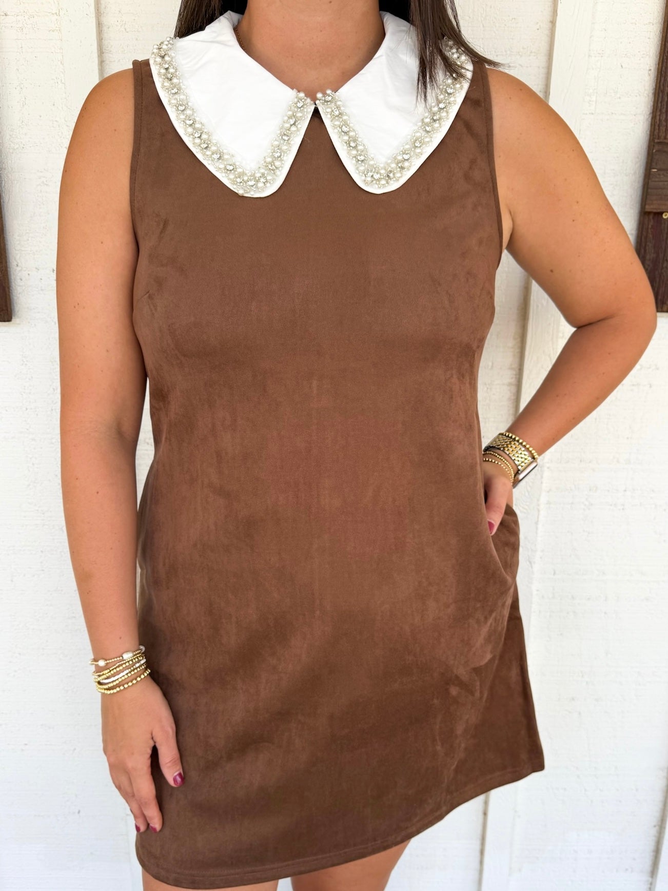 Playful meets polished in this sleeveless mini dress featuring a bold contrast collar. The clean silhouette keeps it fresh and modern, while the sharp collar detail adds just the right touch of retro charm. Perfect for sunny days out or dressed up with heels for a night on the town, it's a standout piece with effortless appeal.