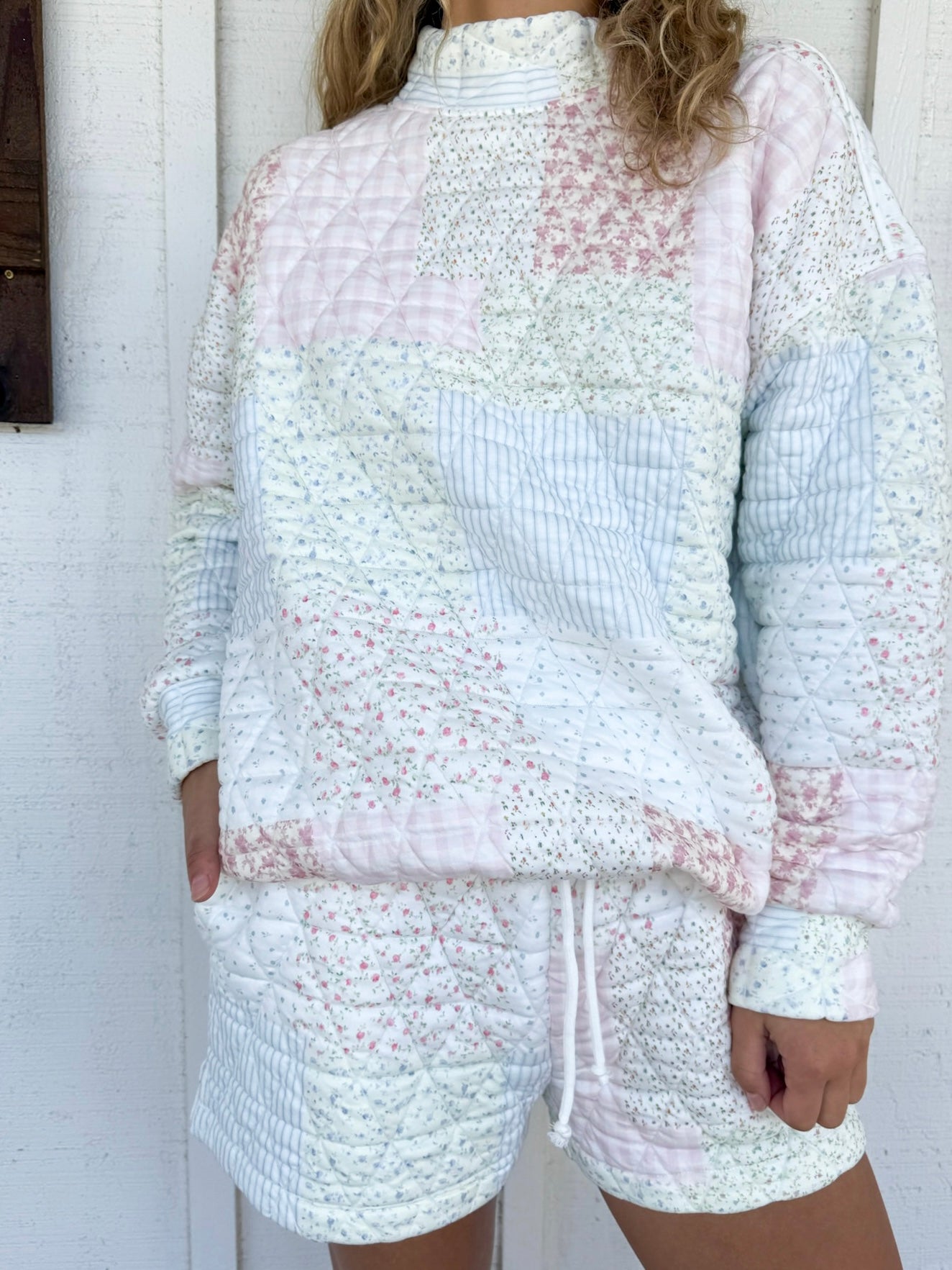 Get cozy and stylish with The Taryn Set, featuring textured lounge shorts and an oversized mock neck sweatshirt. The quilted pattern adds a fun, tactile twist to your casual look, making comfort feel delightfully playful all day long. Perfect for lounging or casual outings, this set brings a fresh vibe to your relaxed wardrobe.
