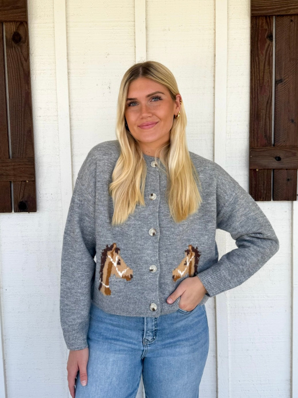 Cozy up in The Wiley Sweater, featuring a playful horses graphic that adds a spirited touch to your look. This long sleeve sweater top blends comfort with a dash of wild charm, perfect for kicking back or turning heads on casual days. Embrace your inner rancher in a fun, easygoing style!