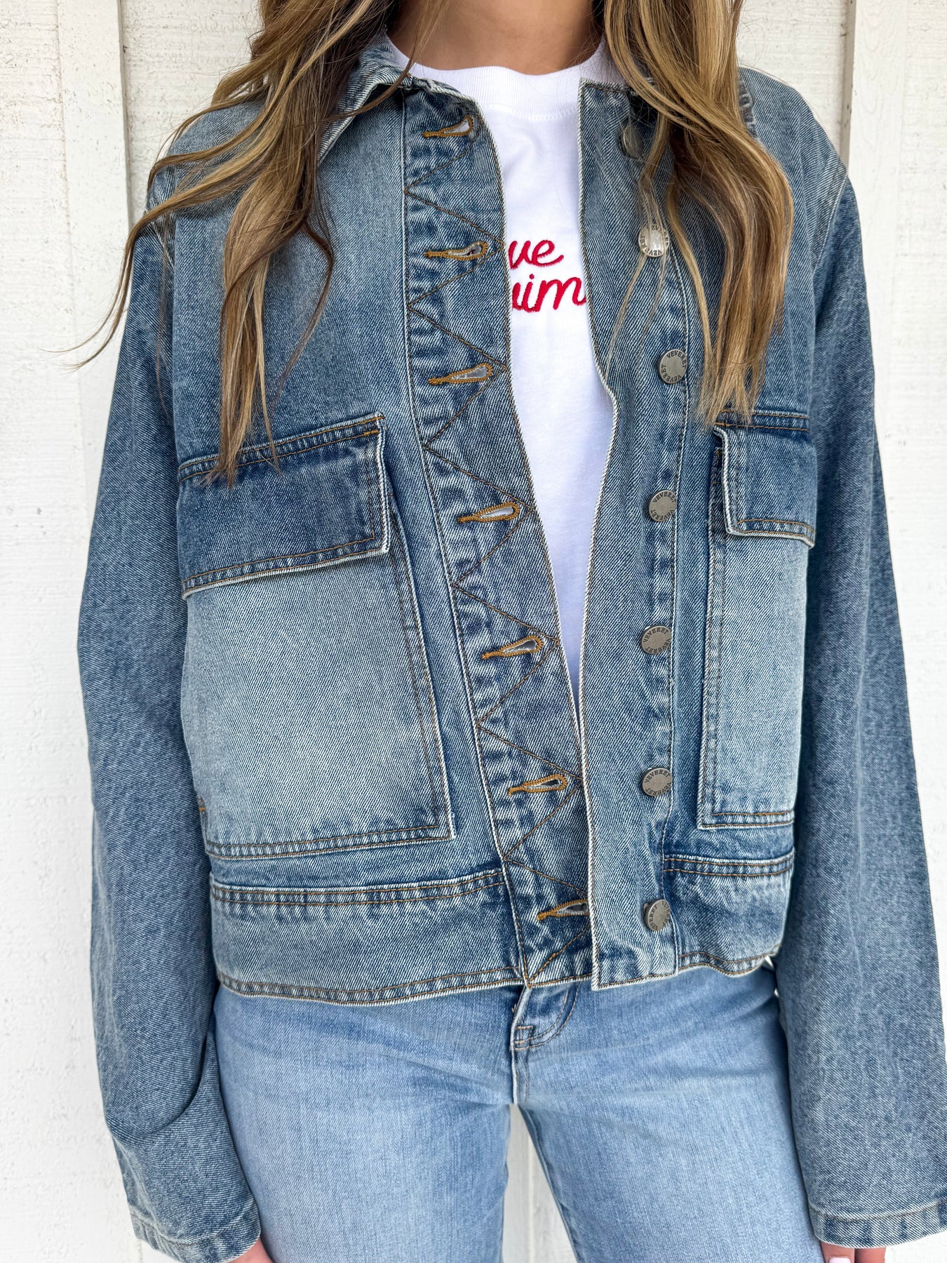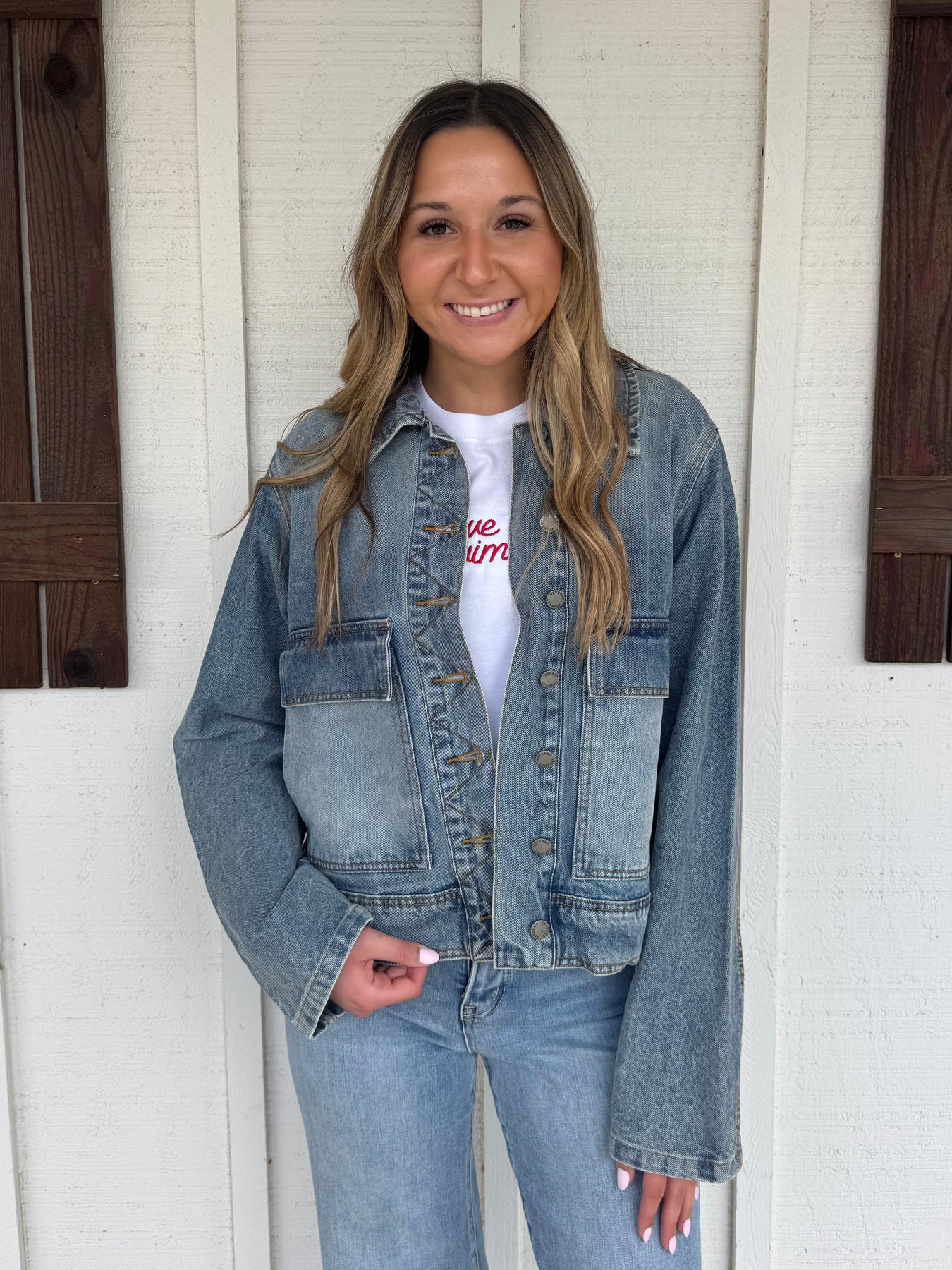 Meet The Karsyn Jacket—a denim classic with a playful twist. Its timeless design brings a fun, fresh vibe to your wardrobe, perfect for layering or starring on its own. Whether you’re heading out for an adventure or just adding a cool edge to your everyday look, this jacket adds effortless style and comfort every time you wear it.