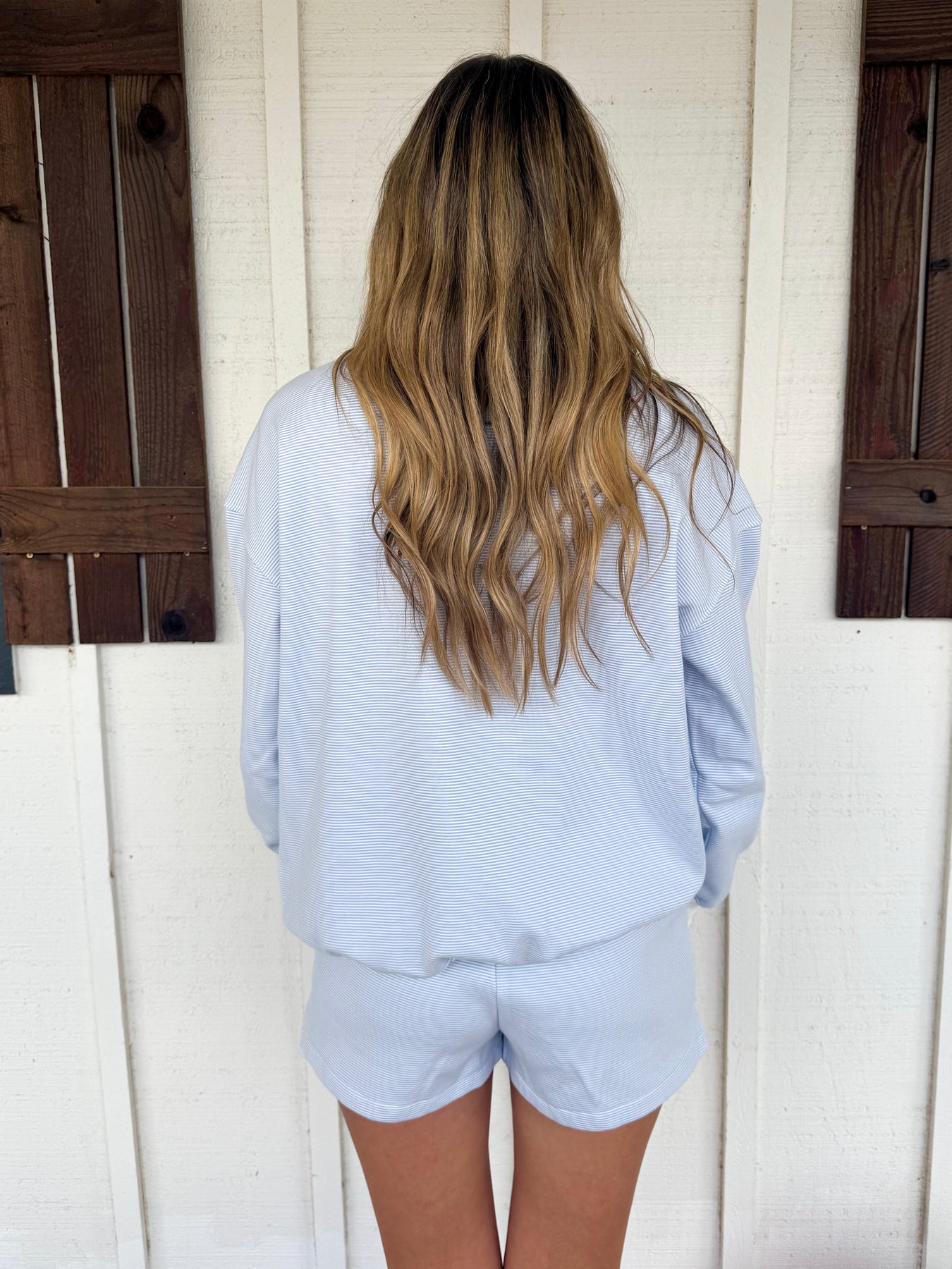 Step into fall with The Shelby Set, a playful duo of striped shorts and a long sleeve top designed for cozy comfort and effortless style. Perfect for cool days, this trendy outfit keeps you comfy while embracing the season’s change with a fun, casual vibe.