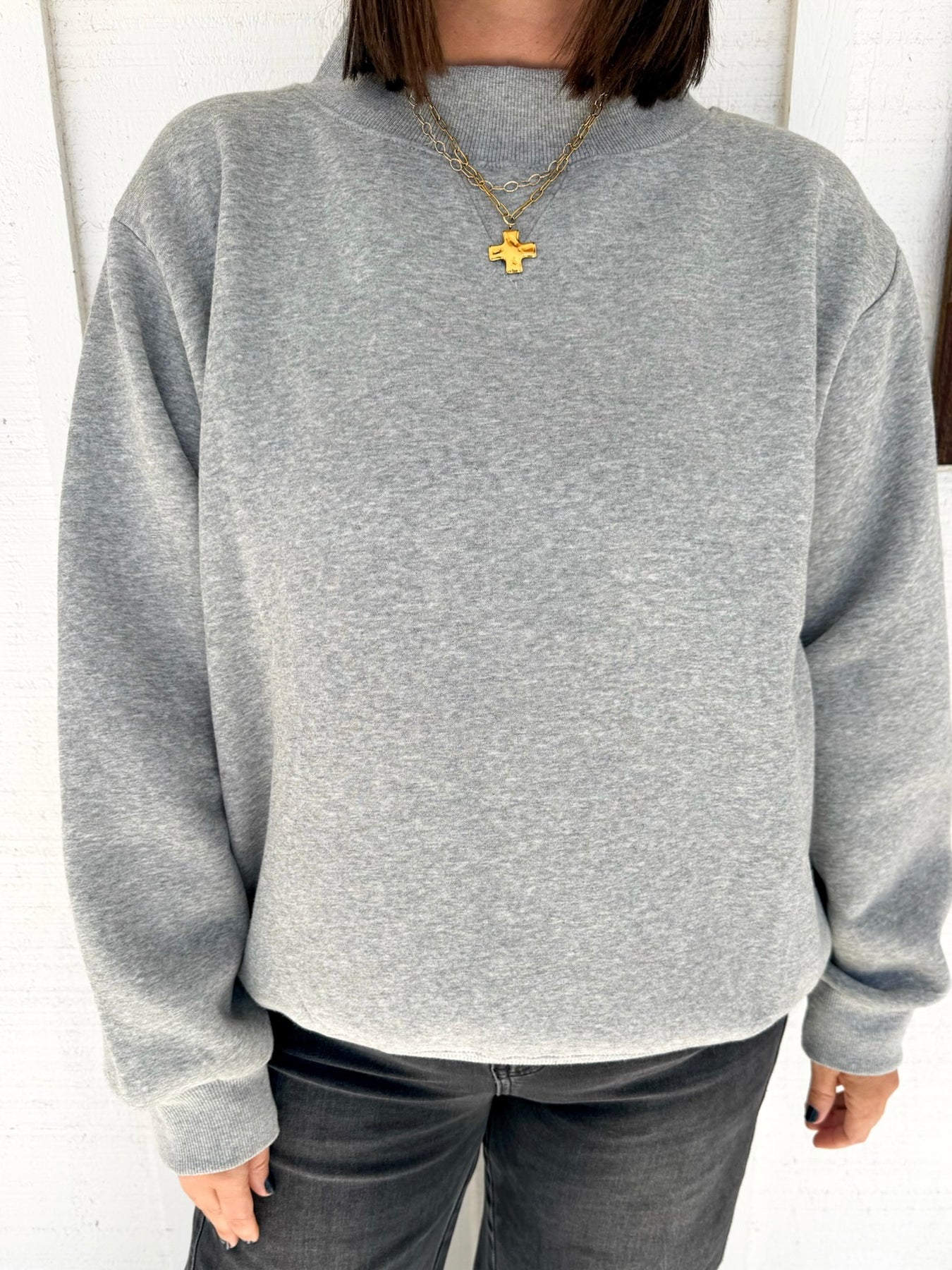 Snuggle up in the Liliana Sweater Pullover, where cozy meets cute. This soft fleece pullover features a wide mock neck that wraps you in warmth with a playful touch. Perfect for lazy days or casual meetups, it’s your new go-to for effortless comfort and style.
