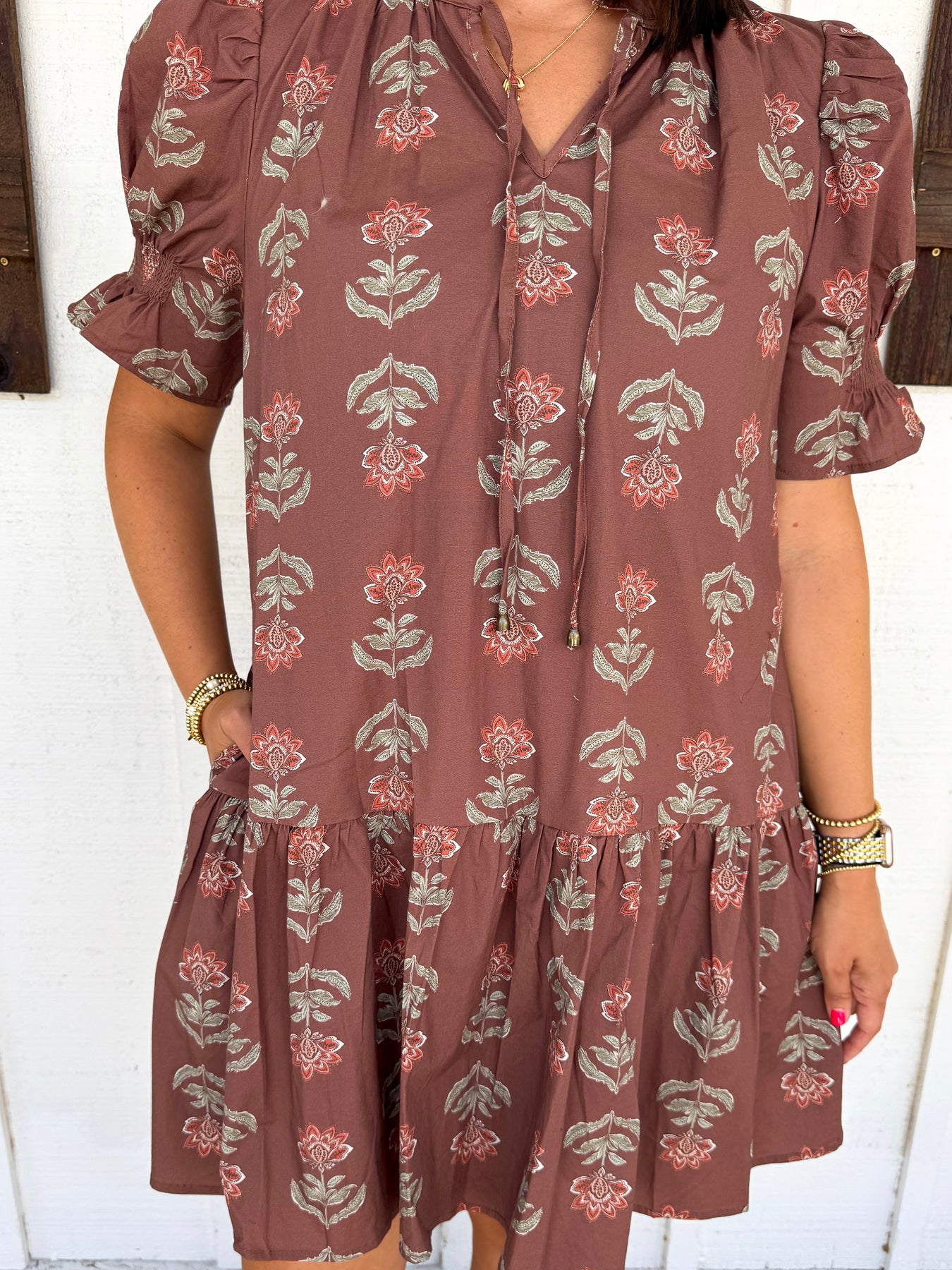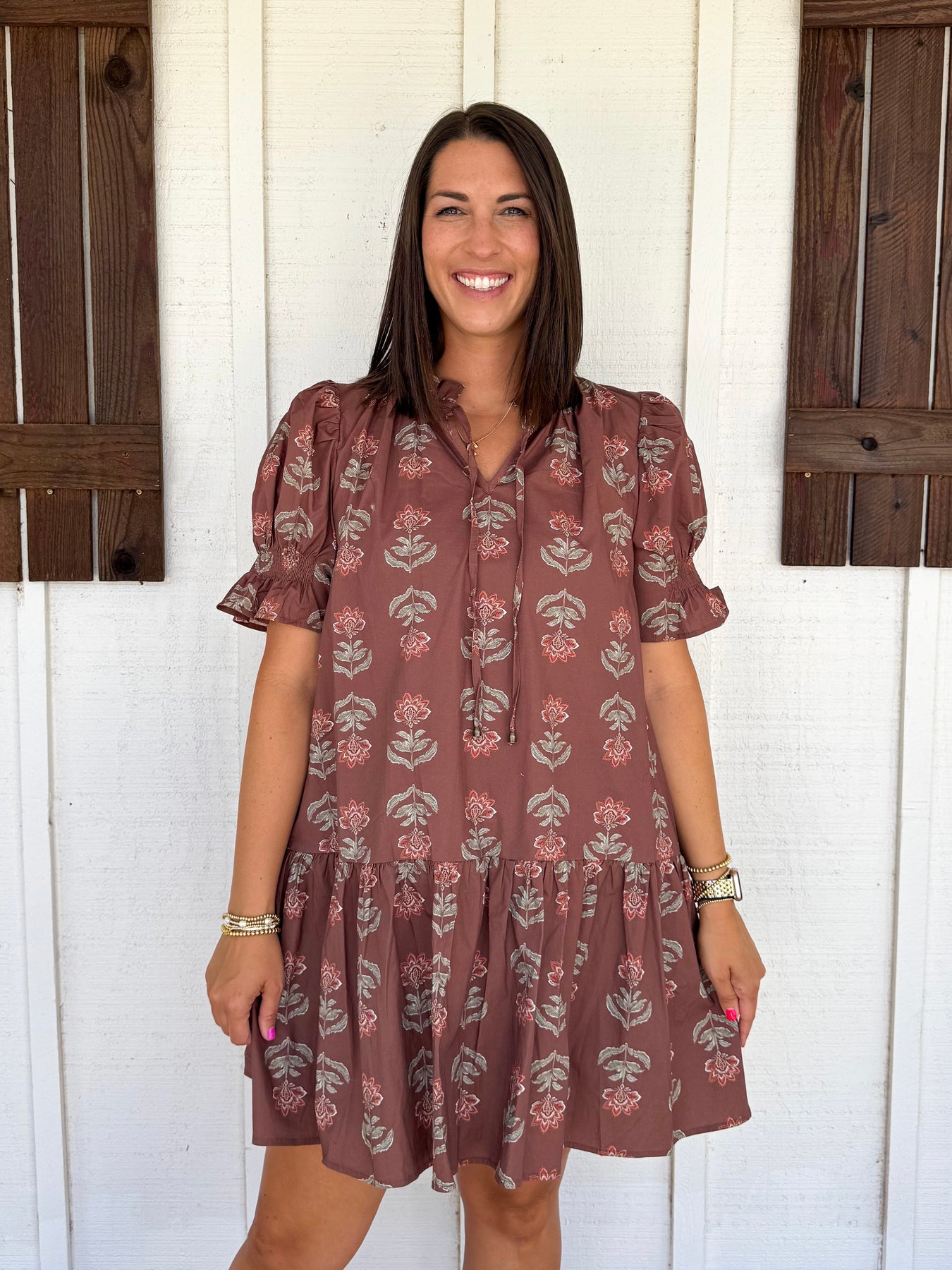 The Jace Dress brings a playful charm with its floral print and smocked finish. Featuring short puff sleeves and a ruffle-edged self-tie V-neck, it’s both flirty and fun. Lightweight and woven with a non-sheer lining, this mini dress offers comfort and confidence. Plus, handy side pockets add a practical touch to your stylish look.