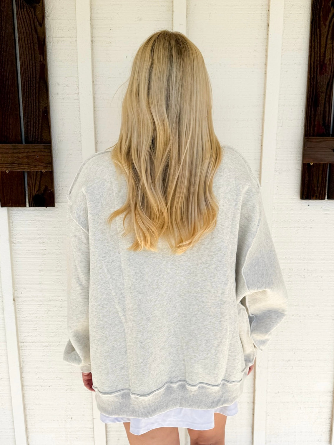 Wrap yourself in pure comfort with our Merrie Embroidered Mock Neck Sweatshirt—the ultimate cozy essential for those who refuse to compromise on softness. Featuring a charming embroidered detail, this oversized beauty boasts a relaxed drop shoulder silhouette and long sleeves perfect for layering. The luxuriously plush fleece feels like a warm hug, while ribbed cuffs and hemline keep everything in place. Whether you're curling up with your favorite book or running errands around town, this mock-neck sweatshirt delivers effortless style and all-day comfort.