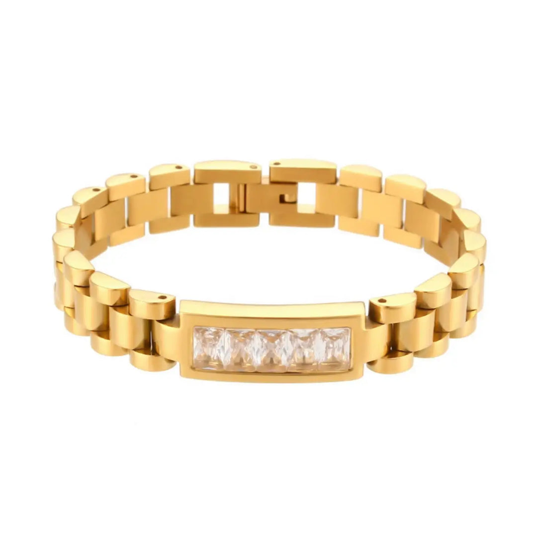 HJ Clear Zirconia Wristwatch Chain Bracelet