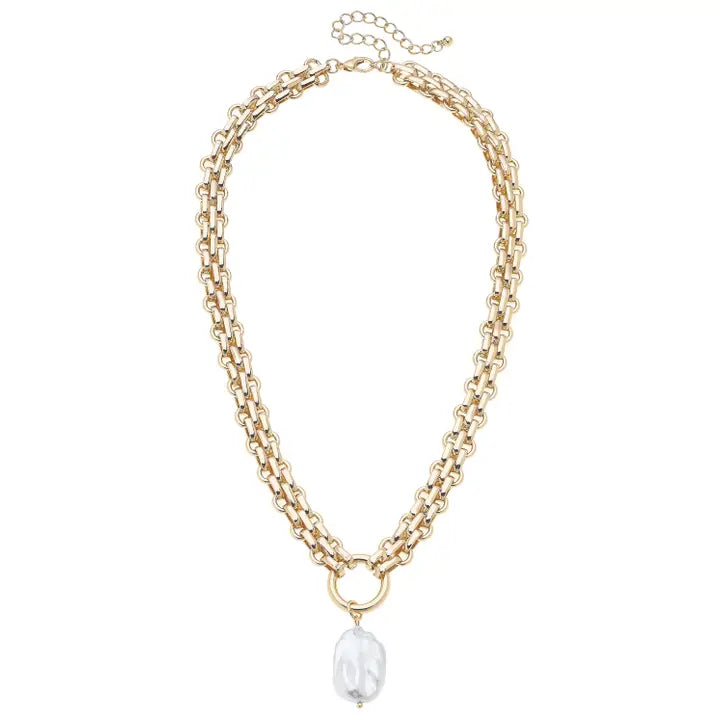 CS Lucille Chunky Link Pearl Pendant Necklace