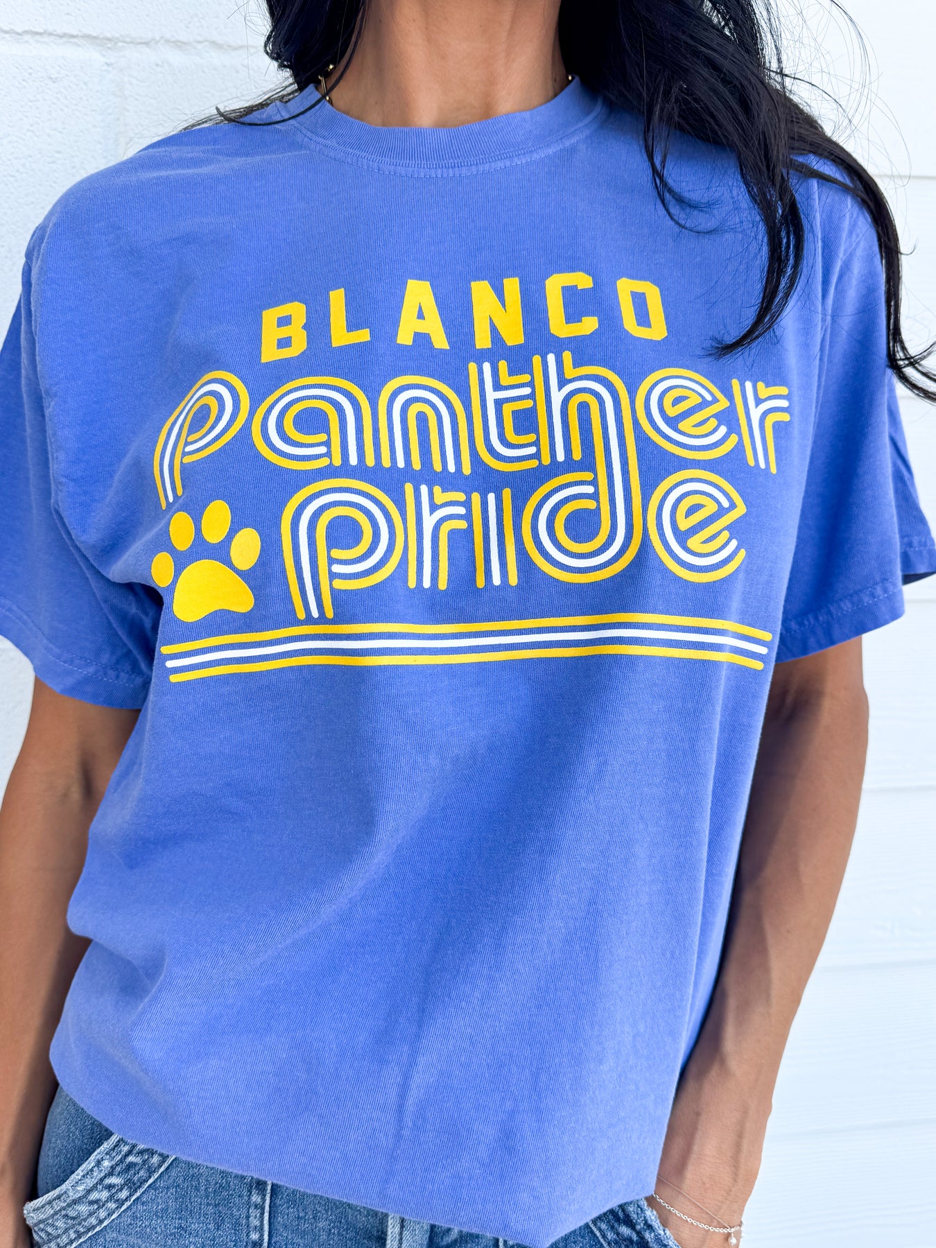 Show your Blanco Panthers pride with the Panther Pride Tee! Perfect for game day, this comfy Bella Canvas and Comfort Colors tee comes in youth and adult sizes, making it easy for the whole family to cheer on the team in style. Soft, breathable, and full of school spirit—wear it loud and proud!