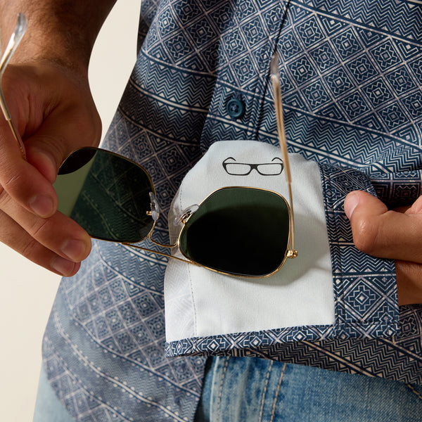 Engineered for the modern outdoorsman, the Ariat Men's Printed VentTEK Outbound Shirt combines style with serious performance. AriatTEK® technology adapts to any weather while Moisture Movement Technology™ wicks away sweat to keep you dry. VentTEK™ mesh panels and a breathable yoke enhance airflow for all-day comfort, while Sun Protection Fabric™ with UPF 40 shields you from harmful rays. Greater Arm Mobility™ allows unrestricted movement, and FreshTEK™ odor control keeps you feeling fresh through long hours of wear. The slim fit works perfectly for tucking, and a hidden microfiber lens cloth in the hem means you're always ready for the moment. Underarm gusset adds extra comfort where you need it most.