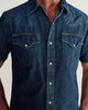 Our Short Sleeve Denim Pearl Snap is all about classic Western style with a modern fit and next-level comfort. Made from lightweight cotton denim with ring-slub yarns and a soft enzyme wash, this shirt feels broken-in from day one—and only gets better with wear. It rocks authentic pearl snaps that hold firm, plus our signature Flying-T pockets and back yokes for genuine Western detail. The tailored fit layers perfectly under a jacket or stands strong on its own with boots and jeans. With rich color depth and natural highs and lows, this is anything but a flat, boring shirt.