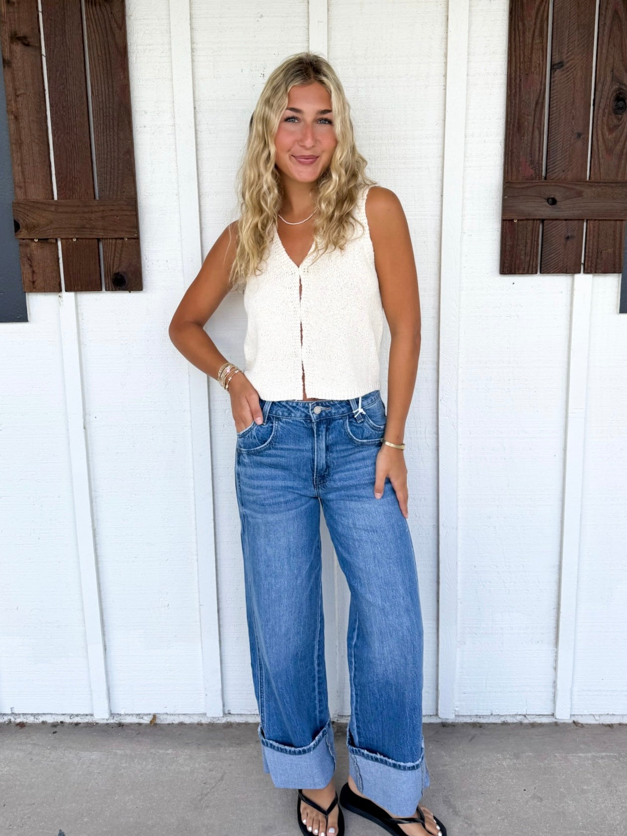 Step into comfort and style with The Deary Jeans! These super high-rise, cuffed baggy wide jeans feature stretchy denim that moves with you. The single cuff hem and ankle length add a playful twist to your everyday look, making them perfect for casual outings or relaxed weekends. Embrace the roomy fit without sacrificing shape—your new go-to jeans for effortless cool vibes.