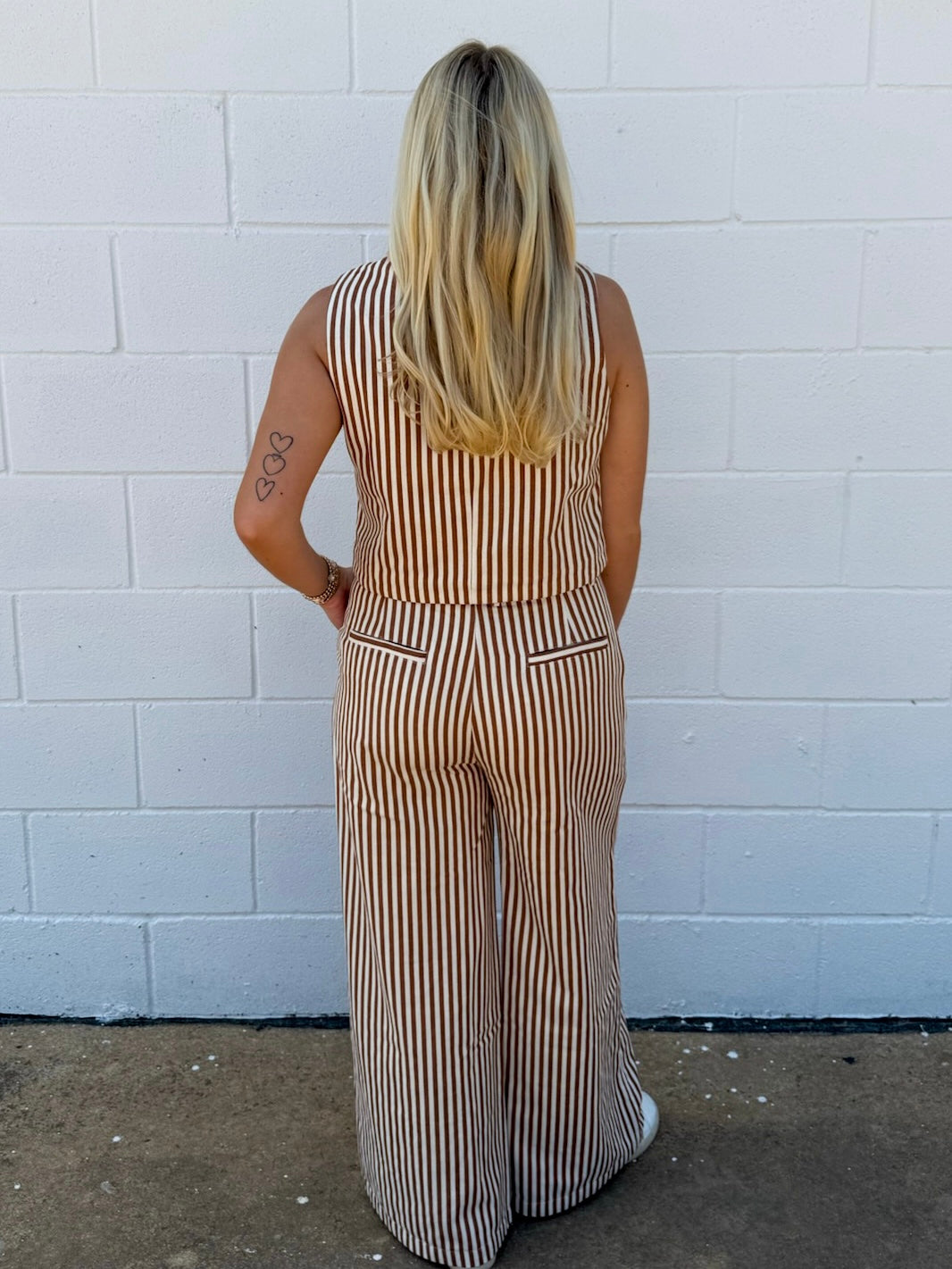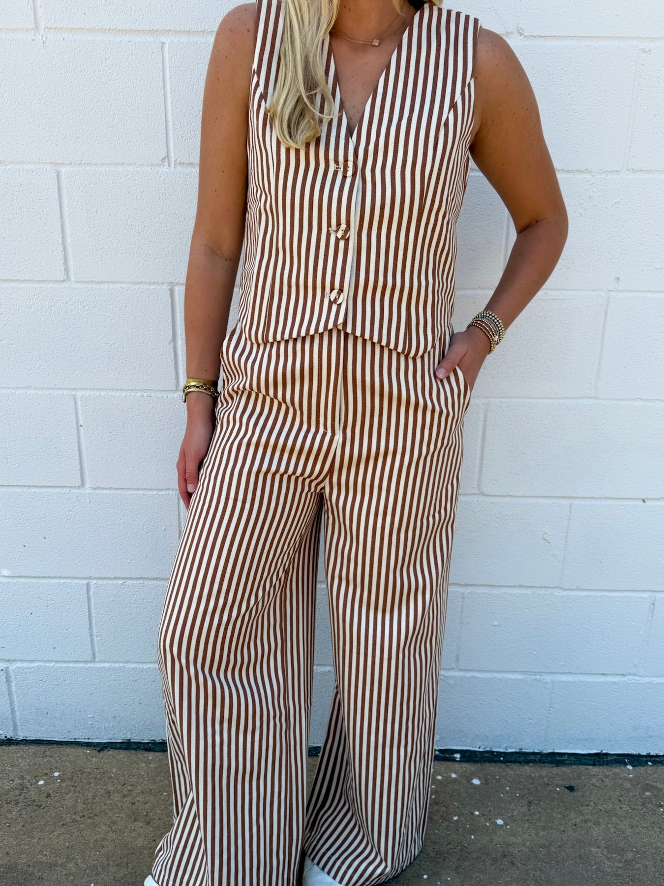 Get ready to turn heads with The Sawyer Set! This playful duo features a striped button-front vest top that adds a flirty twist to your look, paired perfectly with wide-leg striped pants for effortless style and comfort. Together, they create a fun, coordinated outfit that’s perfect for lounging, brunch, or wherever your day takes you. Embrace the stripes and move with confidence!