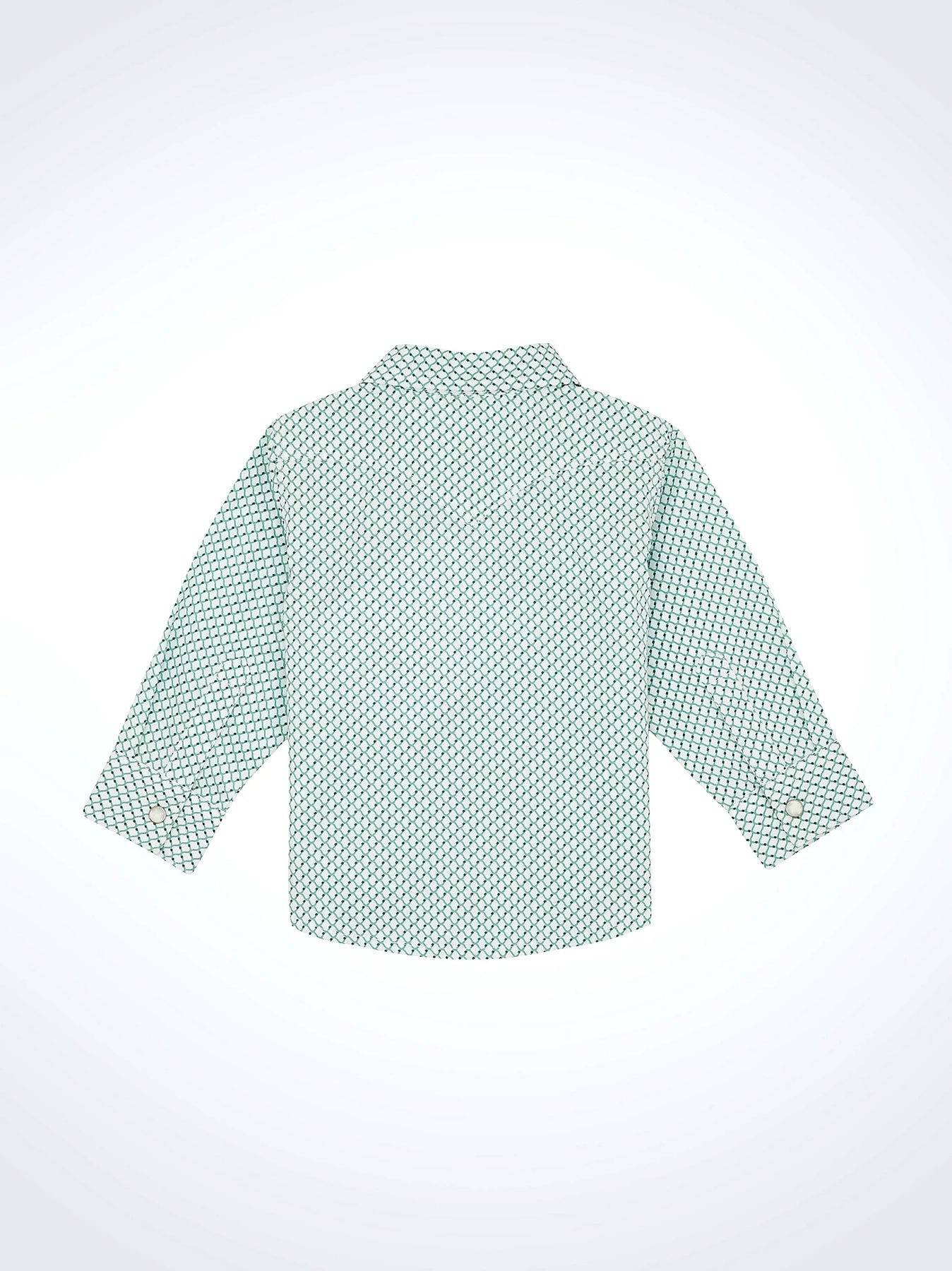 When you're getting your little ones immersed in cowboy culture, Wrangler® is your one-stop shop for kids' Western wear that's authentic and meets today's top trends. This striking baby boys' Western shirt features a stylish pattern, Western yokes and cuffs, flap pockets at the chest, signature Wrangler 'W' stitching, and pearl snap buttons.