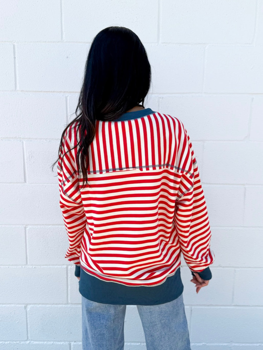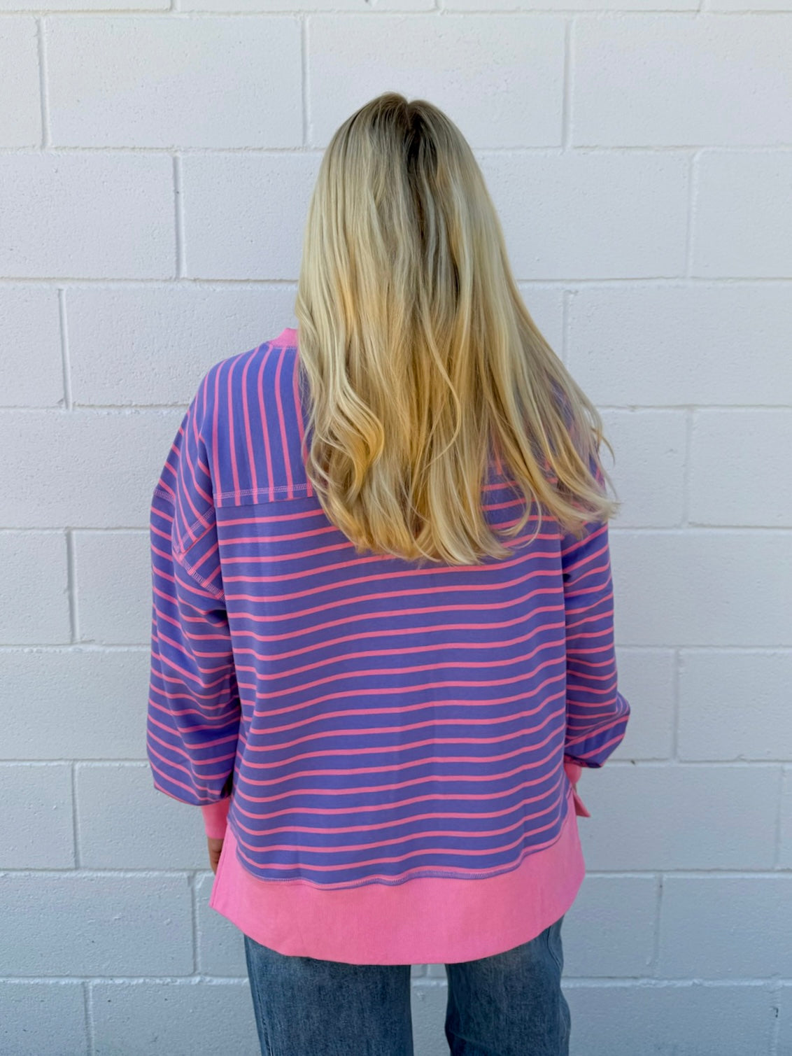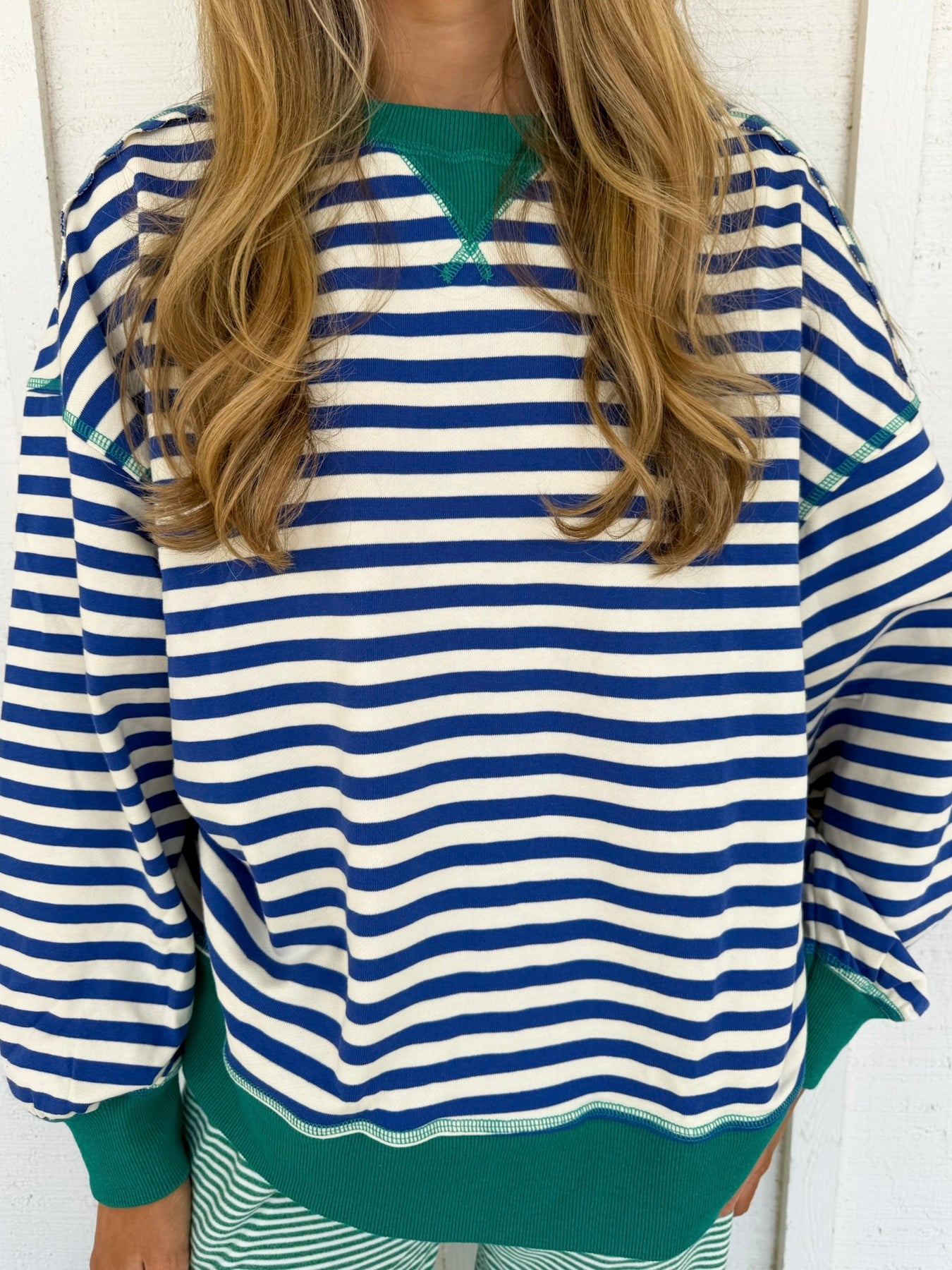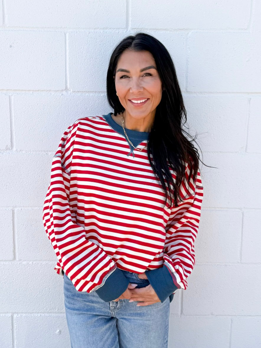 Cozy up in The Dakota Top, your new go-to oversized knit that feels like a warm hug. Its comfy, stretchy fabric makes it perfect for lounging or casual days out, while the playful stripe design adds a fun pop to your everyday look. Effortless style and all-day comfort—what more could you want?