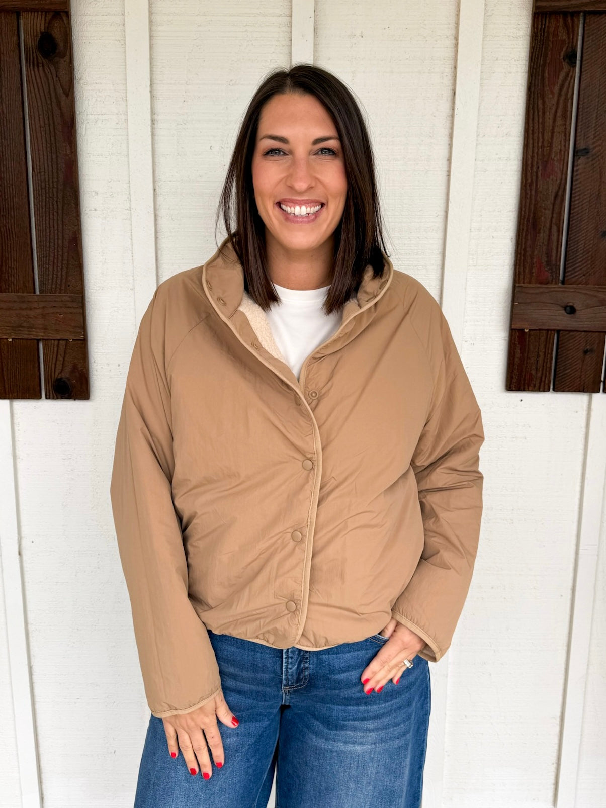 Elevate your winter wardrobe with the sophisticated Skylar Jacket. This oversized reversible jacket features front pockets and long sleeves for added warmth. The button down design is both stylish and functional. Stay cozy and chic with this luxurious fleece jacket.