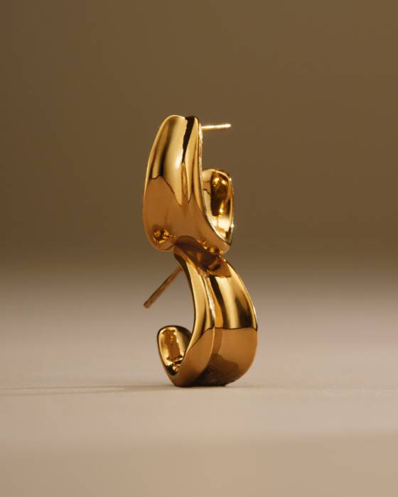 Our Molten Luxe Hoop Earrings are made from durable 18K Gold PVD coating, making them certified waterproof, sweat-proof, and life-proof. Featuring a molten metal, statement-making design, they stand out solo or pair beautifully with the matching bangle and ring.