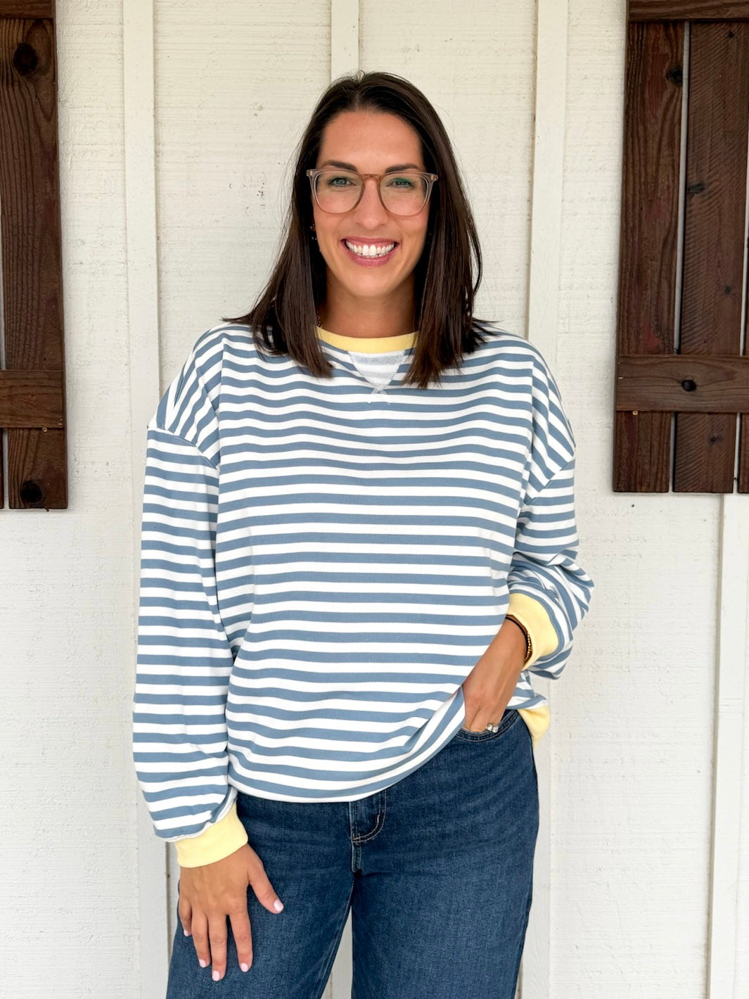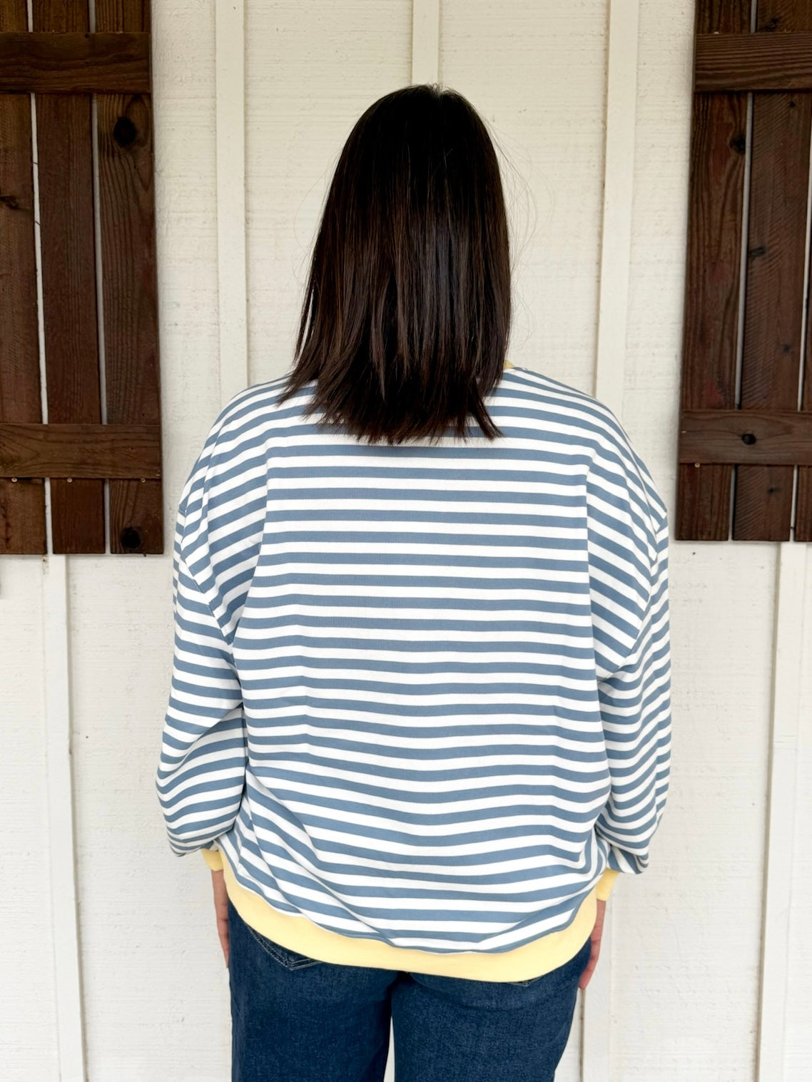 The Valence Top brings cozy comfort with its soft cotton mix jersey knit and a fun striped pattern. Featuring an oversized fit and solid binding accents, this playful piece makes casual days effortlessly stylish. Its round neck adds a classic touch that’s perfect for layering or wearing solo.
