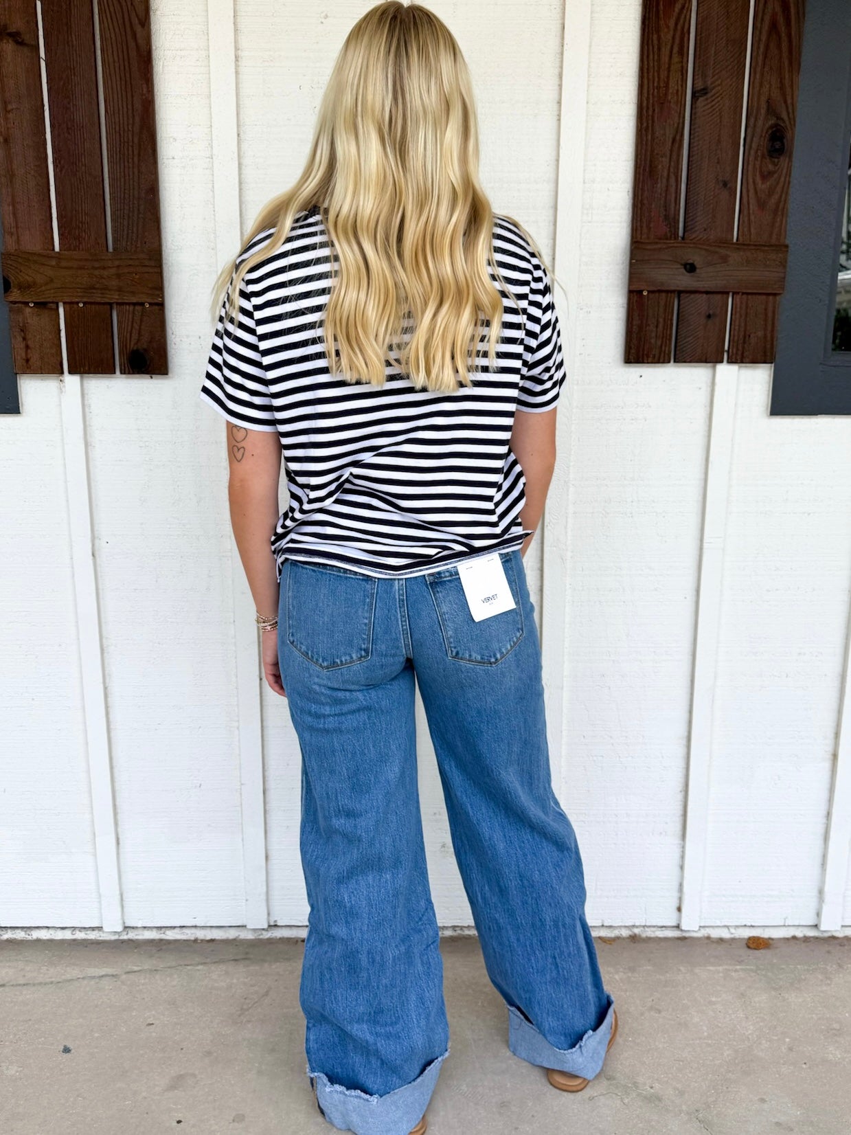 Slip into The Adore You Jeans for a fun twist on classic denim. These high-rise, wide-leg jeans feature a comfy stretch fabric and a playful single cuff at the hem. Perfect for keeping it relaxed while still turning heads, they offer full-length coverage with a flattering fit that hugs your waist just right. Whether you’re stepping out for brunch or a casual day out, these jeans bring effortless style with a wink.