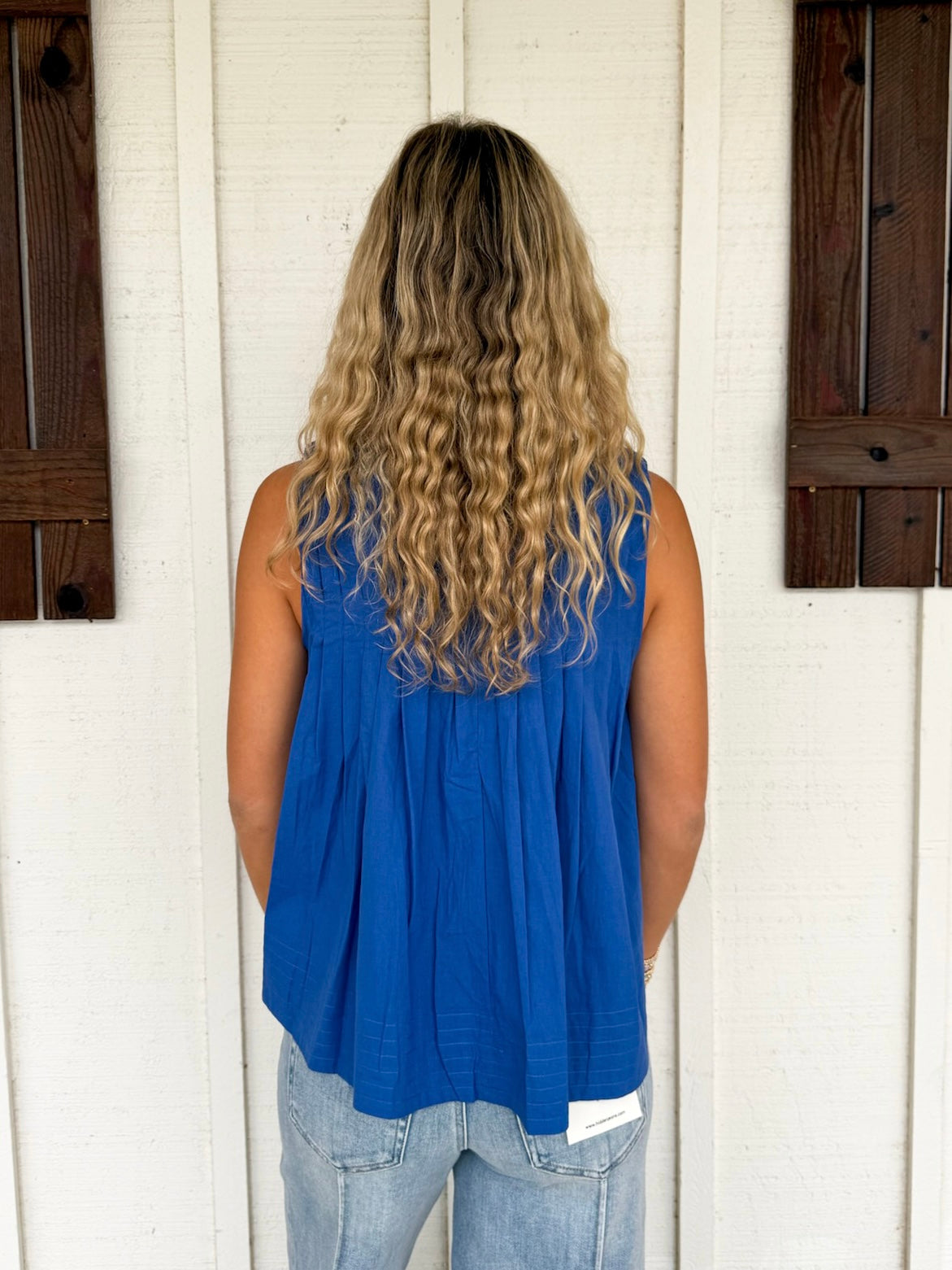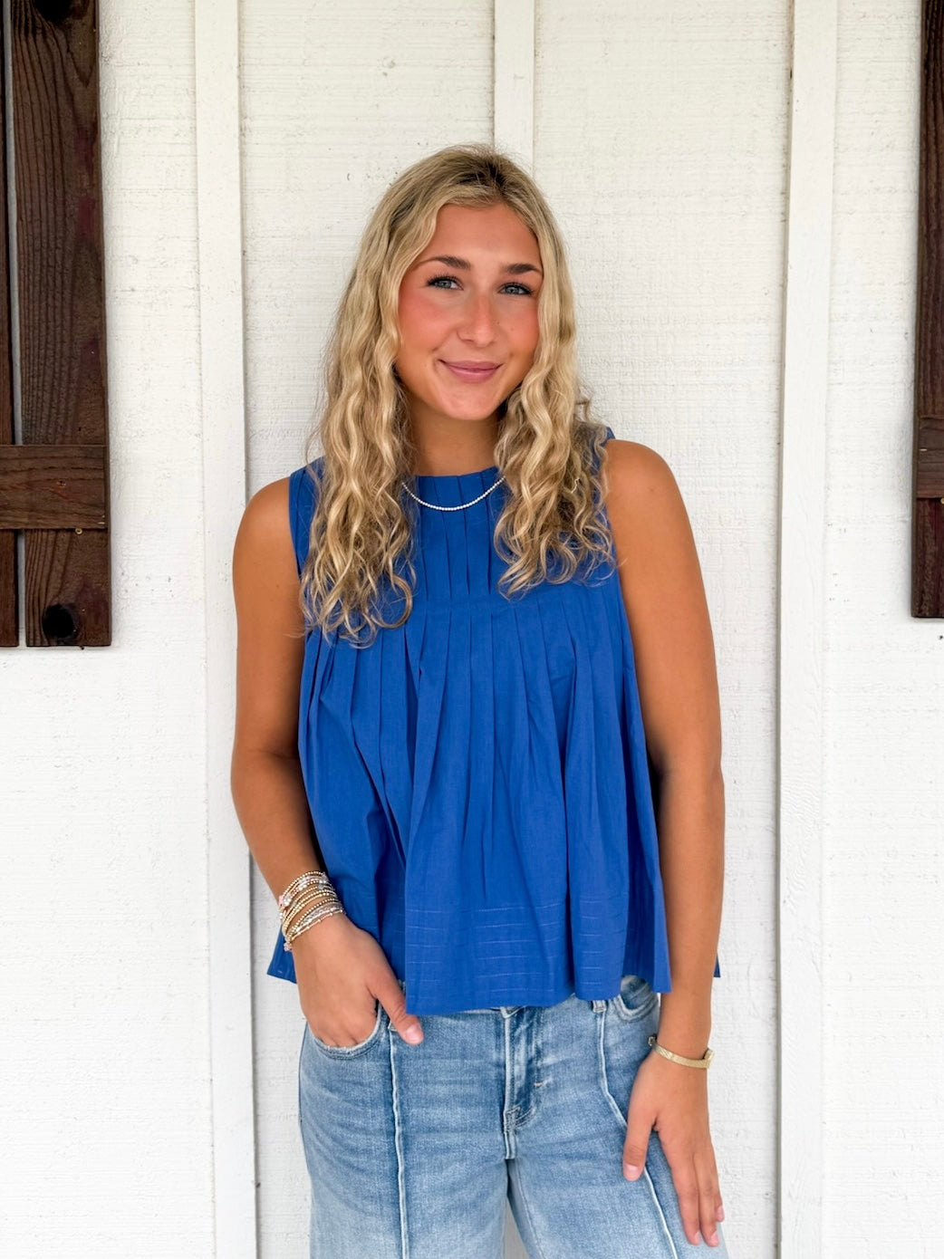Elevate your wardrobe with The Farleigh Top—where playful design meets easy wear. Featuring a fun high-low hem and delicate pleated details, this sleeveless top adds movement and charm to any outfit. The concealed back zipper ensures a seamless look while making it easy to slip on and off. Perfect for days when you want to feel light and stylish with a touch of flair.