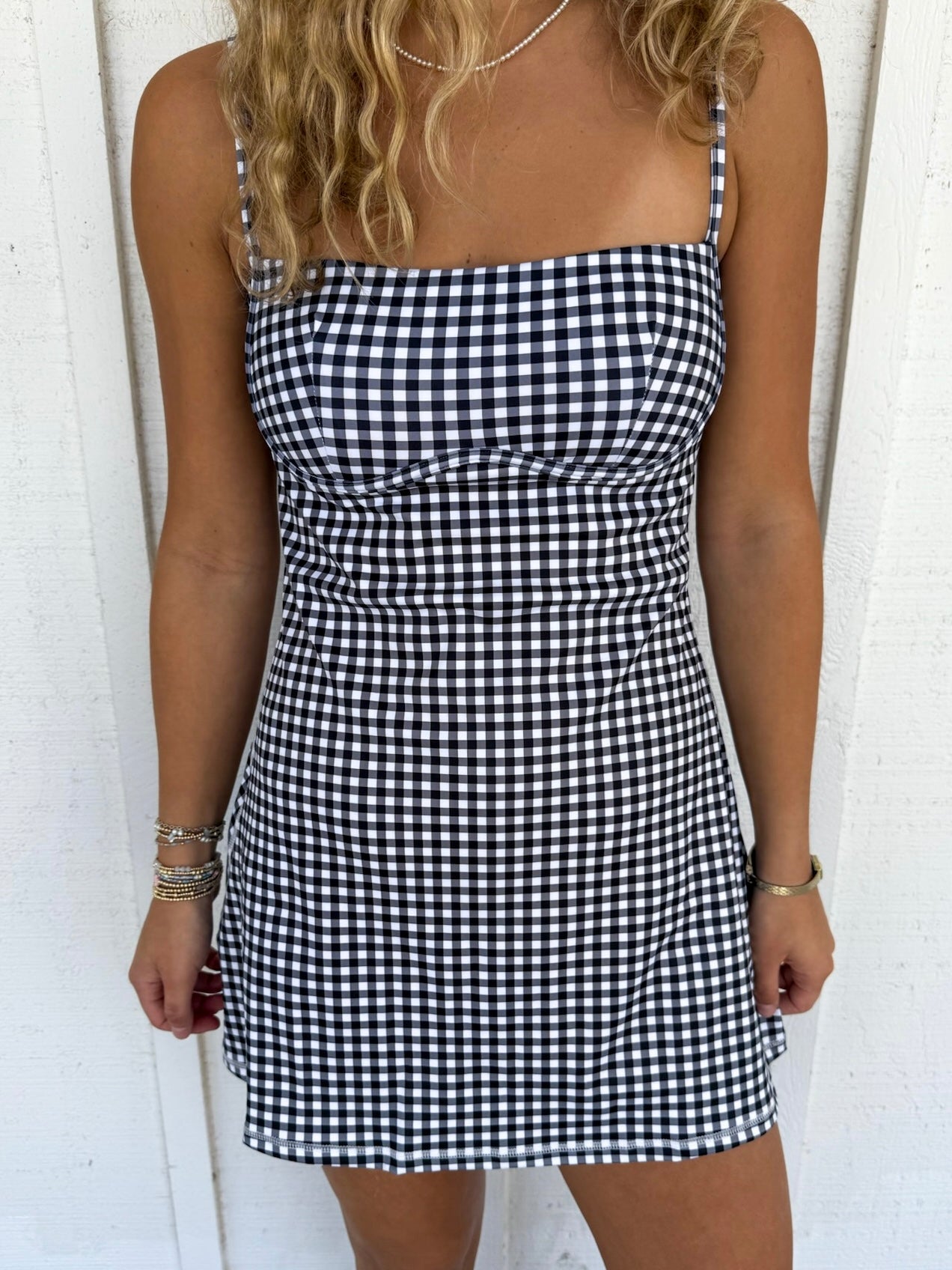 The Ursula Dress is your new go-to for stylish workouts and everyday adventures. Featuring a fun gingham print, this dress includes a built-in bra and spaghetti straps for easy support. With short liners and four-way stretch fabric, it moves with you, keeping comfort and confidence front and center all day long.