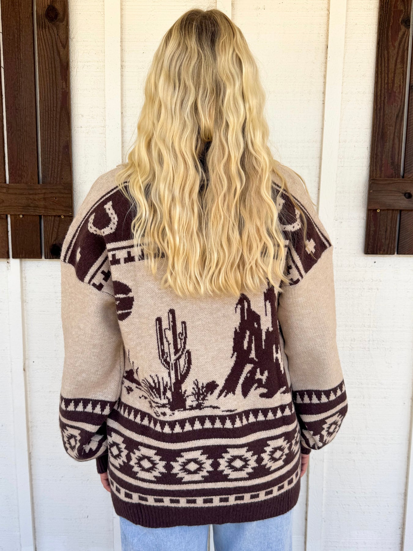 The Stephan Cardigan combines oversized comfort with Western-inspired style, featuring a button-down front and a flattering V-neck. Its long sleeves and relaxed fit make it perfect for layering, offering warmth without sacrificing effortless cool. Ideal for those seeking a blend of casual sophistication and distinctive graphic appeal.