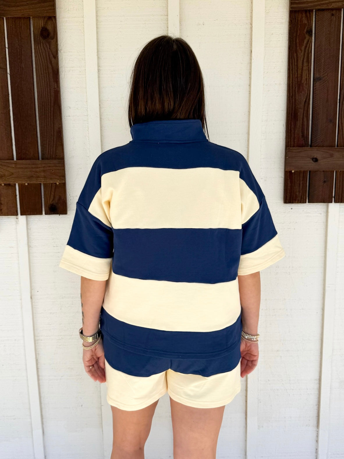 The Brody Set brings effortless style with its coordinated two-piece design. Pair the high-waisted color block shorts with the matching high-neck zip-up knit top featuring half sleeves for a polished, put-together look. The bold color blocking adds visual interest while the structured silhouettes flatter your figure. Perfect for casual outings or weekend adventures, this set makes getting dressed fun and easy.