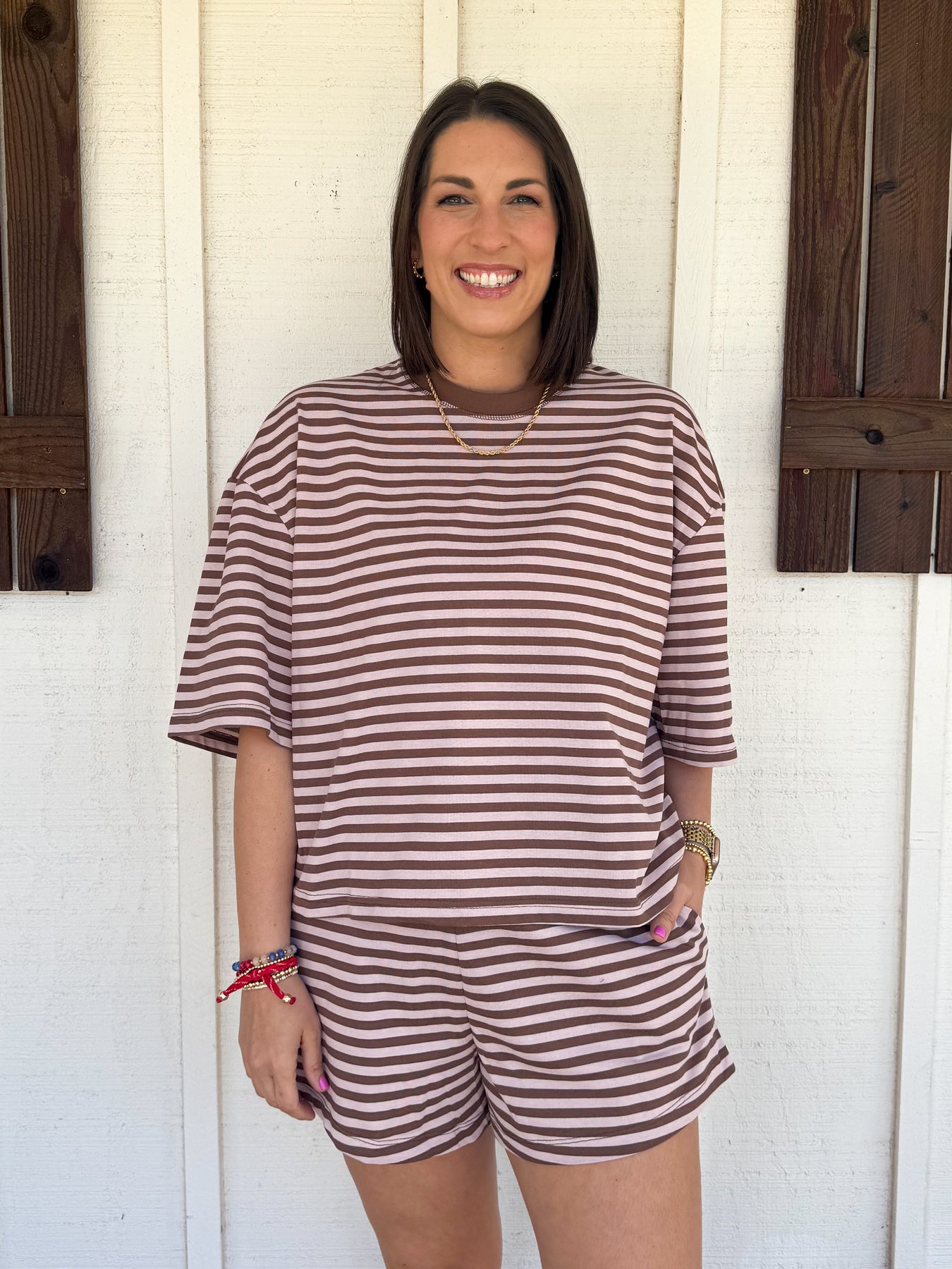Meet The Lena Set—your new go-to for effortless style! This adorable striped duo pairs a breezy, relaxed-fit top with comfy elastic-waist shorts that move with you. Perfect for lazy days, weekend hangouts, or whenever you want to look put-together without trying too hard. Cozy, cute, and totally wearable.
