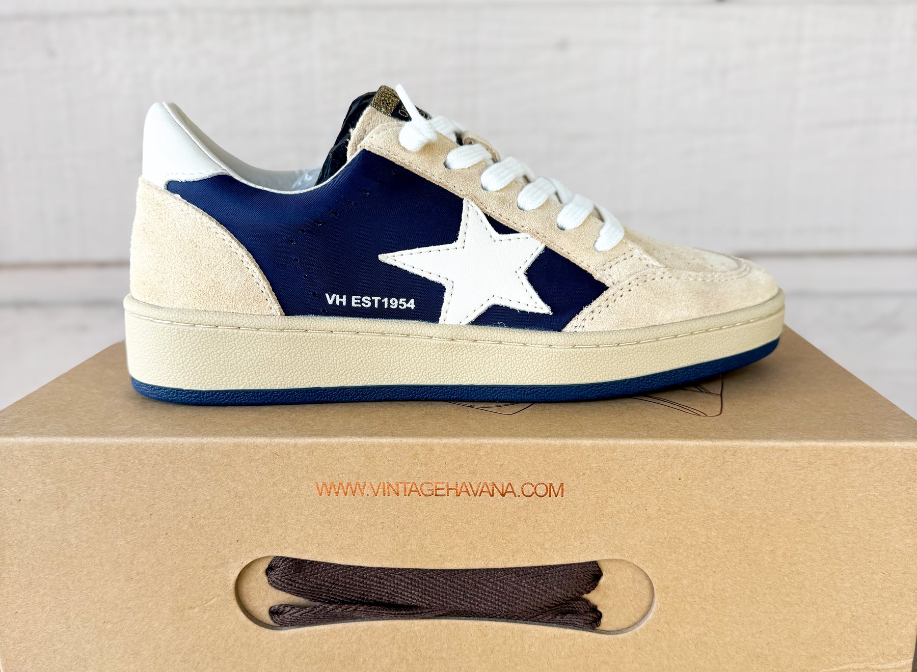 Rock some vintage Havana vibes with these Denisse 57 Sneakers. Featuring a white star design on top of a beige and navy low top style, you'll be the star of the show. Comfort and style collide in these unique kicks. (No need for a time machine, these shoes have got you covered.)