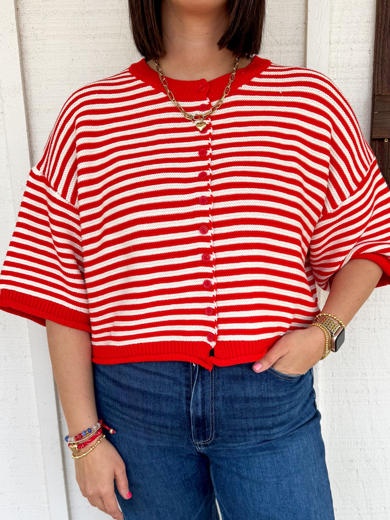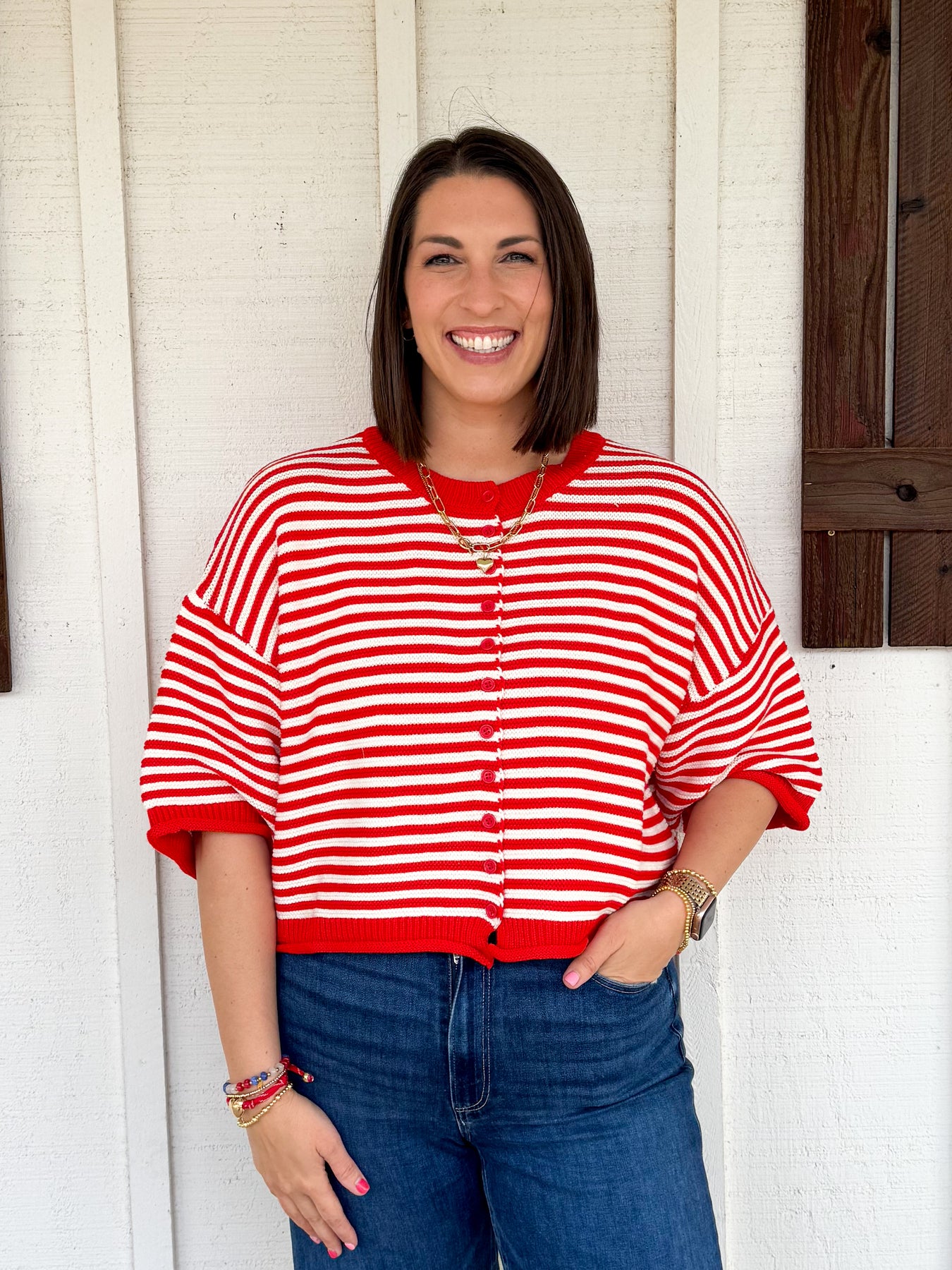 Wrap yourself in Parisian charm with The Karsa Cardigan, an oversized striped beauty that brings effortless elegance to your wardrobe. Featuring playful curly-edge trims and breezy half-sleeves, this whimsical layer is perfect for adding a touch of je ne sais quoi to any season. Cozy, chic, and undeniably adorable—your new favorite throw-on piece awaits.