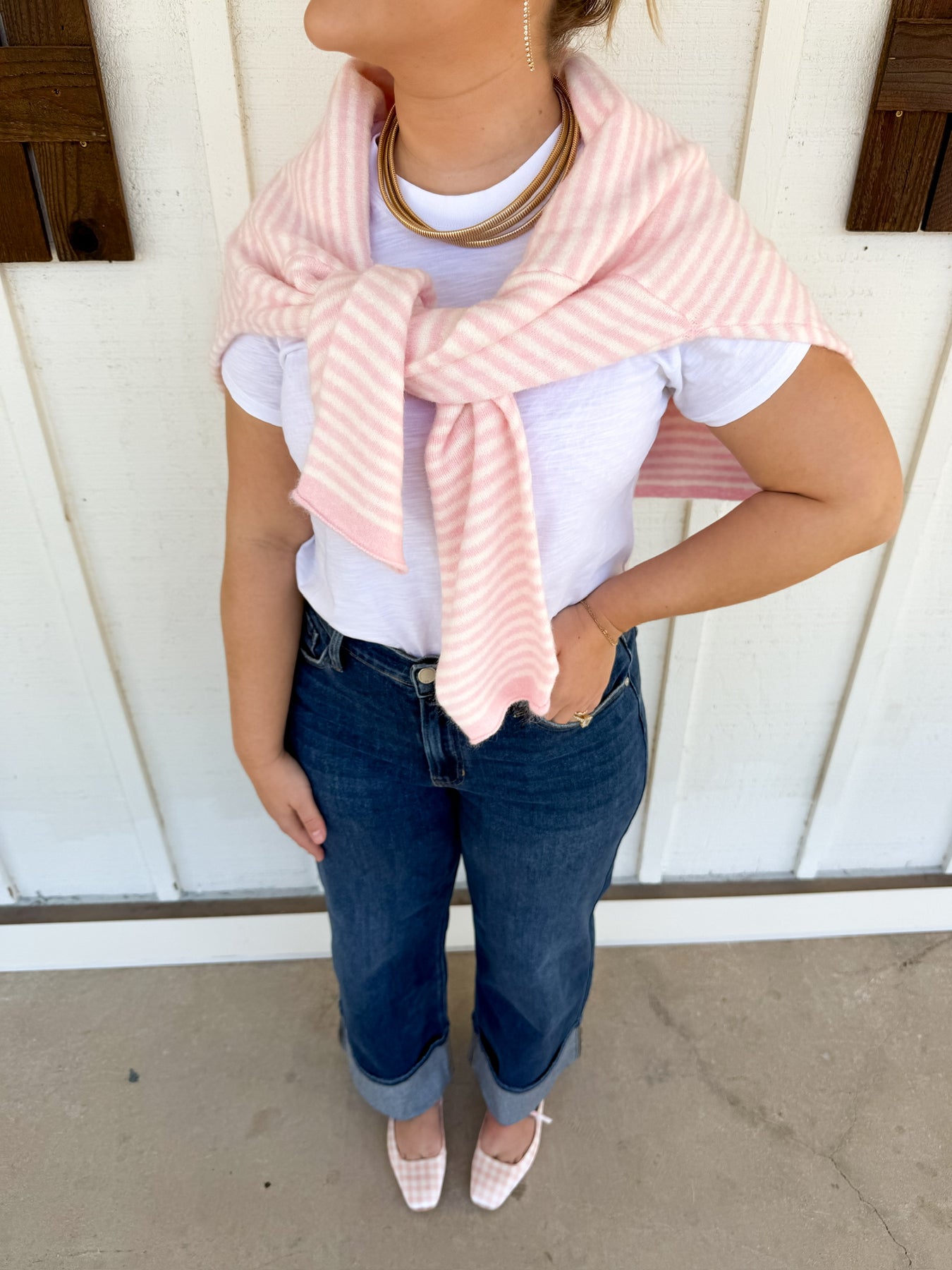Ashley in White is wearing a size Medium. Height is 5’6”, Bust is 34”, Waist is a 28.
