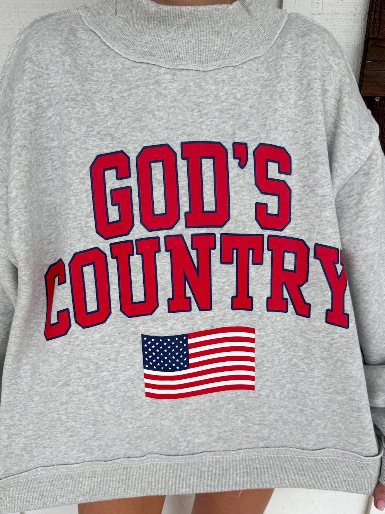 Wrap yourself in comfort with this reversible mock-neck sweatshirt that gives you two looks in one. Featuring a cozy oversized fit with drop shoulders and long sleeves, it's crafted from the softest fleece that feels like a warm hug. One side showcases bold 'GOD'S COUNTRY' lettering with an American flag print, while the reverse reveals 'American Dream' lettering—flip it to match your mood. Rib-banded cuffs and hemline keep everything in place. Perfect for layering or wearing solo, this versatile piece transitions seamlessly from casual days to relaxed evenings.