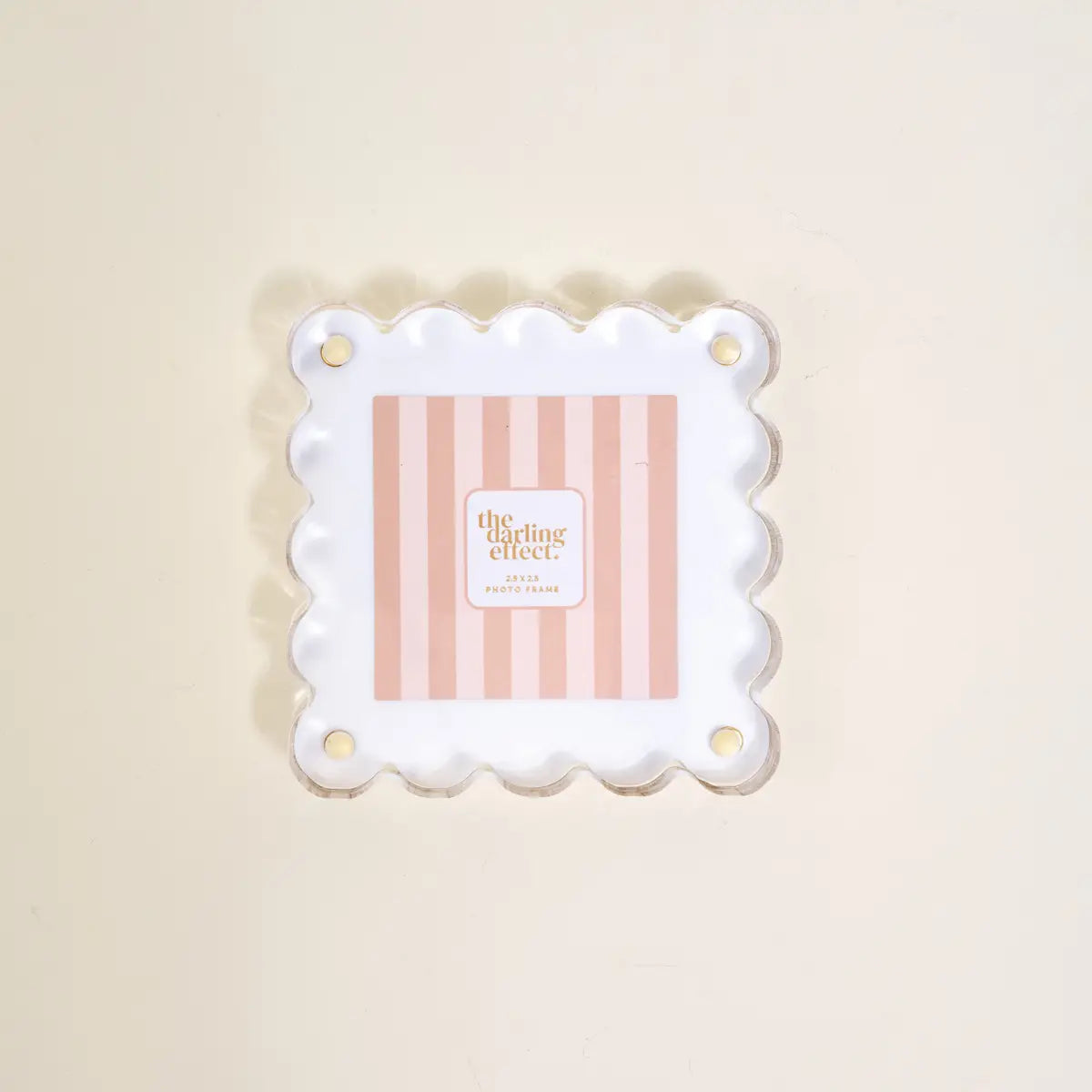 A modern acrylic frame with a playful scalloped edge and magnetic closure, making it easy to showcase and swap your most cherished little memories.