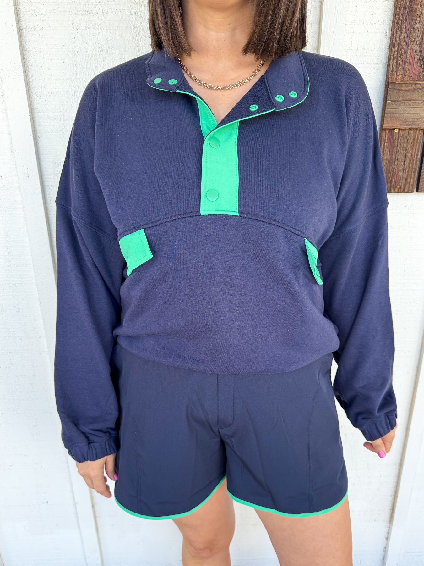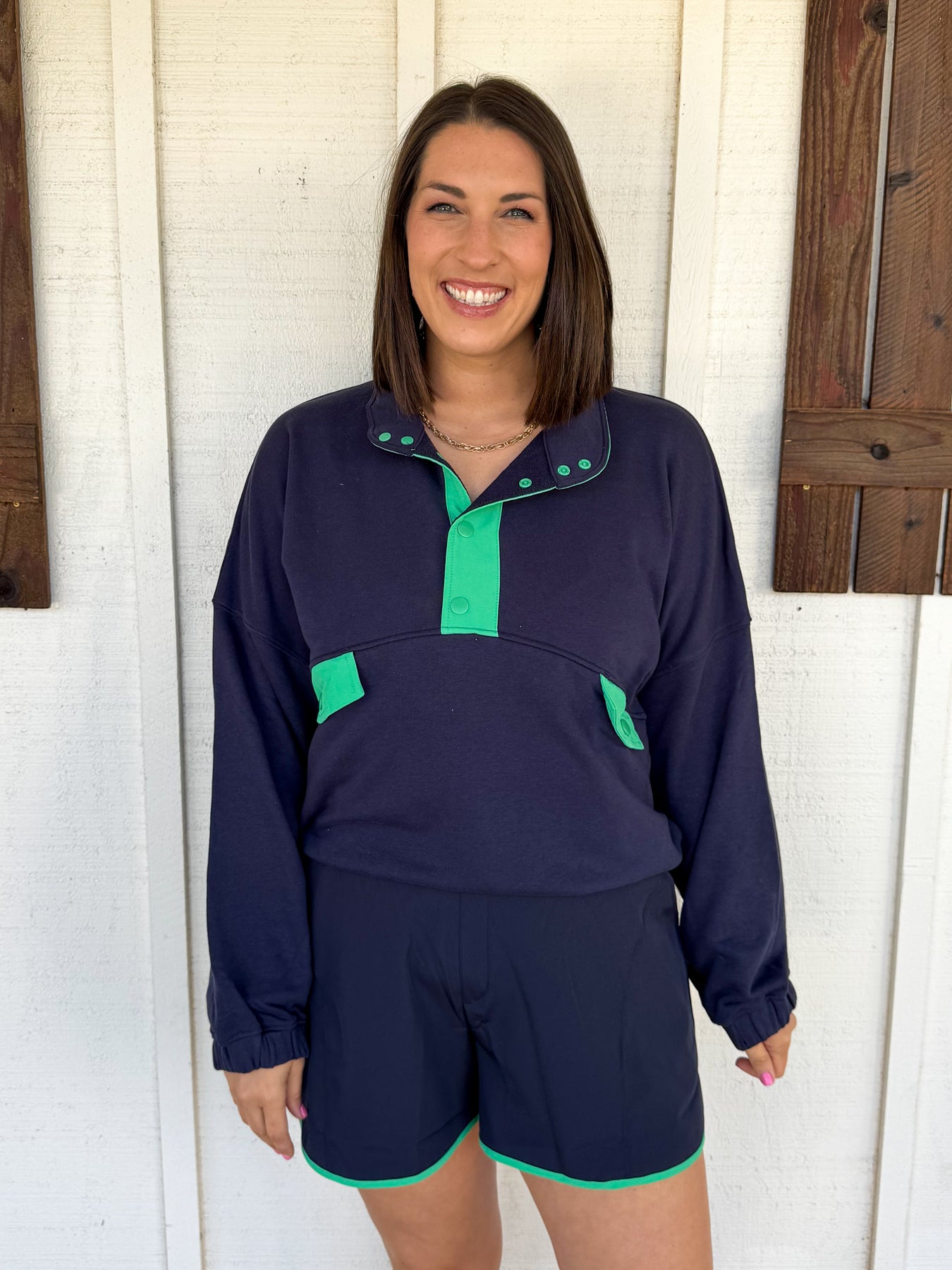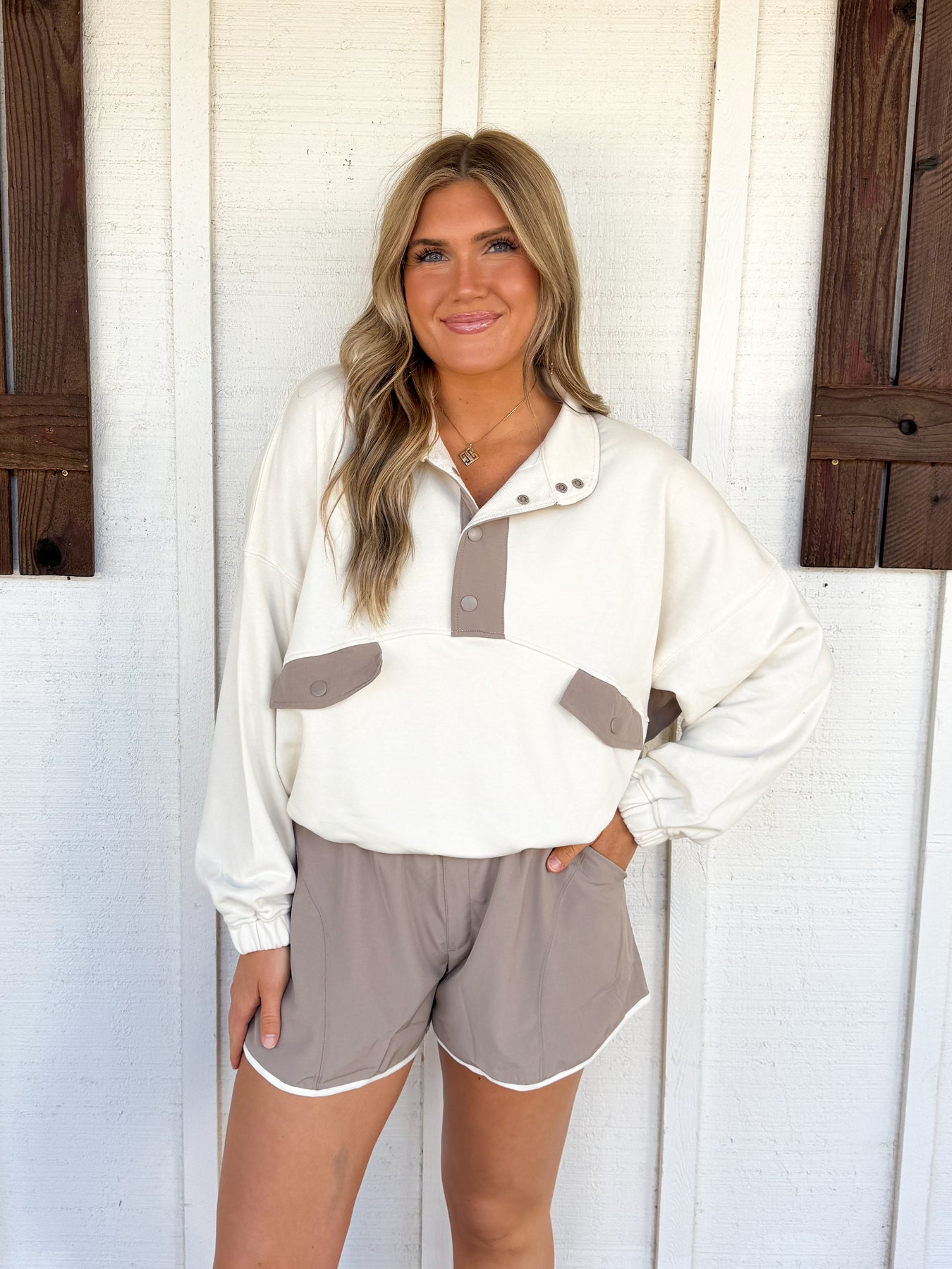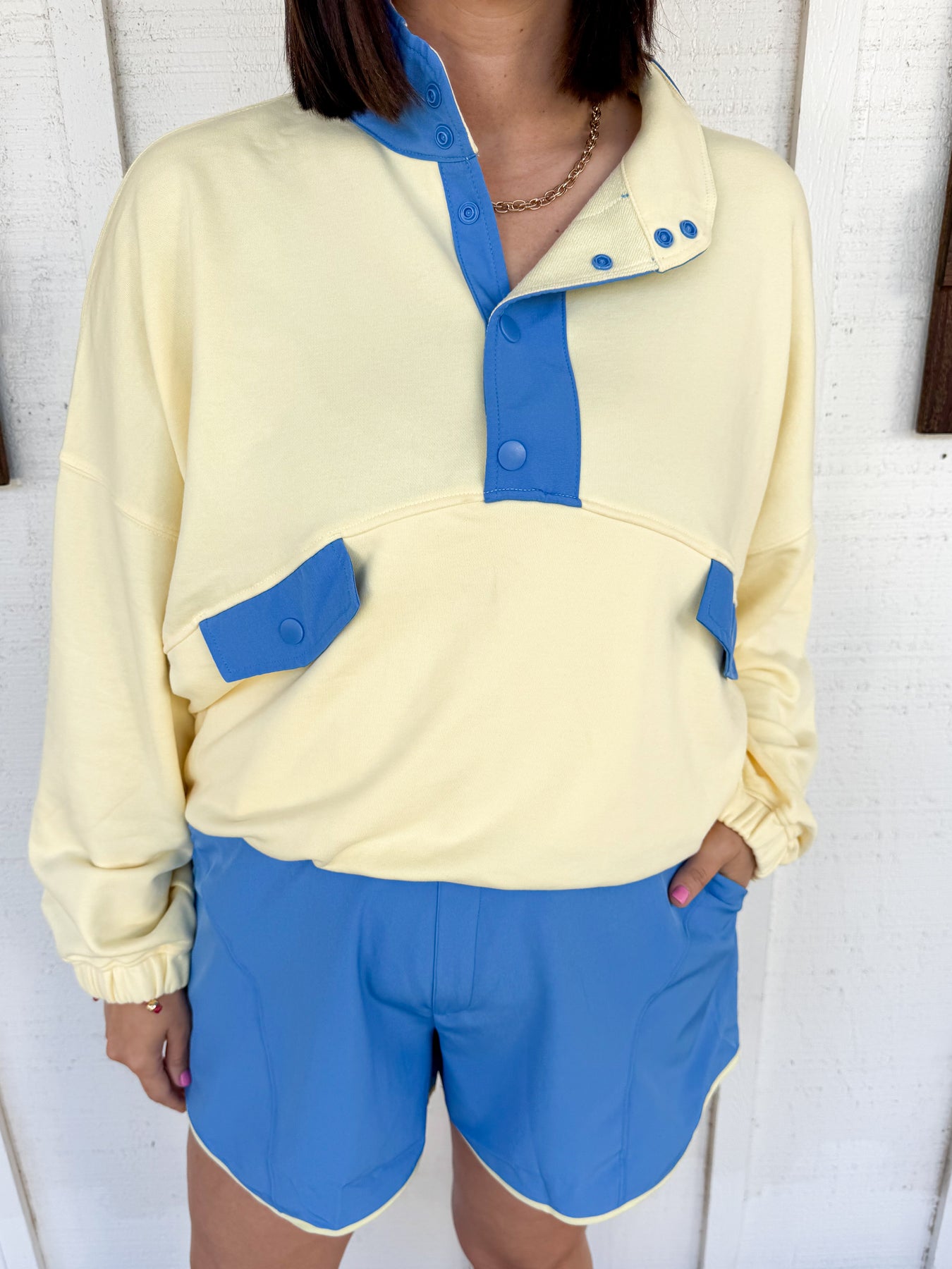 Made from soft French terry fabric, this set delivers an effortless balance of comfort and sporty style. The relaxed pullover features playful color-contrast details that add a bold, athletic edge, while the elastic cuffs create an easy, laid-back silhouette. Paired with lightweight matching shorts, the set feels breathable and comfortable for all-day wear. Designed to move with you, it works just as well for active moments as it does for casual, off-duty styling. Sporty, playful, and easy to wear, this set brings a fresh, confident energy to everyday looks.
