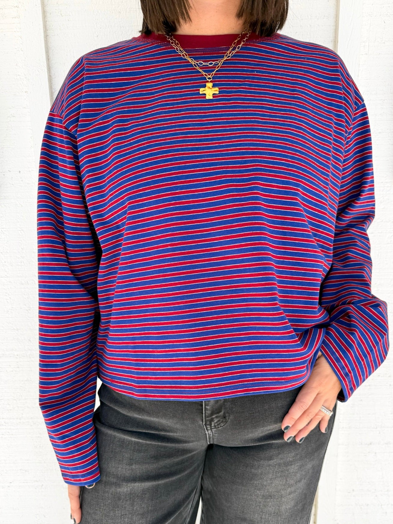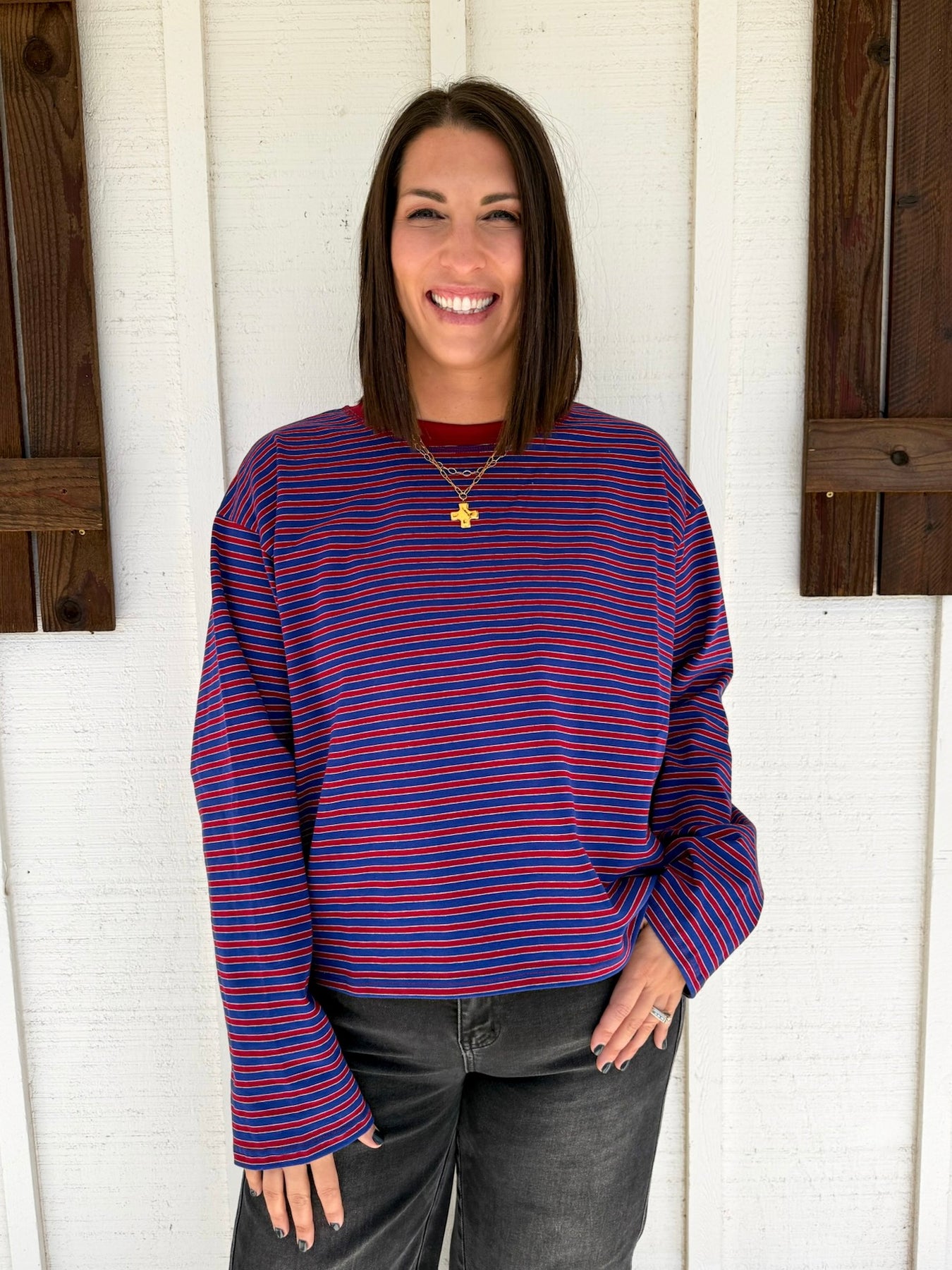 The Lyndsey Top is your new go-to for effortless style. This striped long sleeve features a soft, stretchy fabric that moves with you all day long. Whether you're running errands or keeping it casual, this cozy essential pairs perfectly with everything in your closet. Comfort meets chic in one irresistible package.