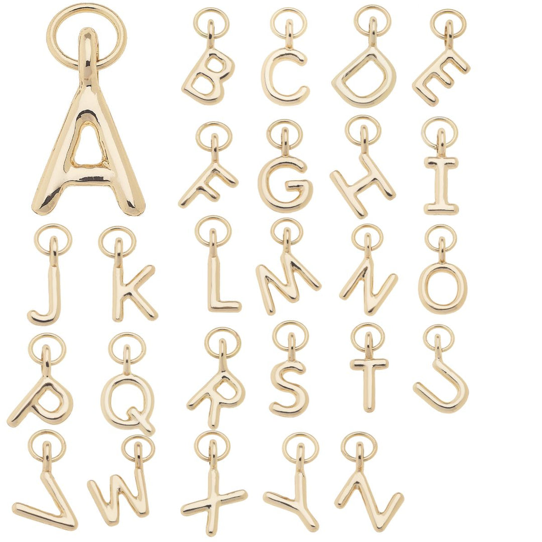 The Mini Initial Charm Assortment offers a selection of mini initial charms in shiny gold, perfect for personalizing your jewelry with initials. These charms make a thoughtful and meaningful gift.