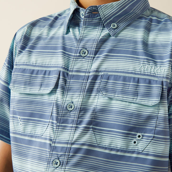 Keep your little one safe from harmful rays with our BR Ariat Boys VentTEK Outbound SS Shirt. Mesh lined yoke for breathability, and a hidden microfiber lens cloth for on-the-go cleaning. Chest pockets and buttoned collar points add style to our generous fit for active kids. UPF 50+.