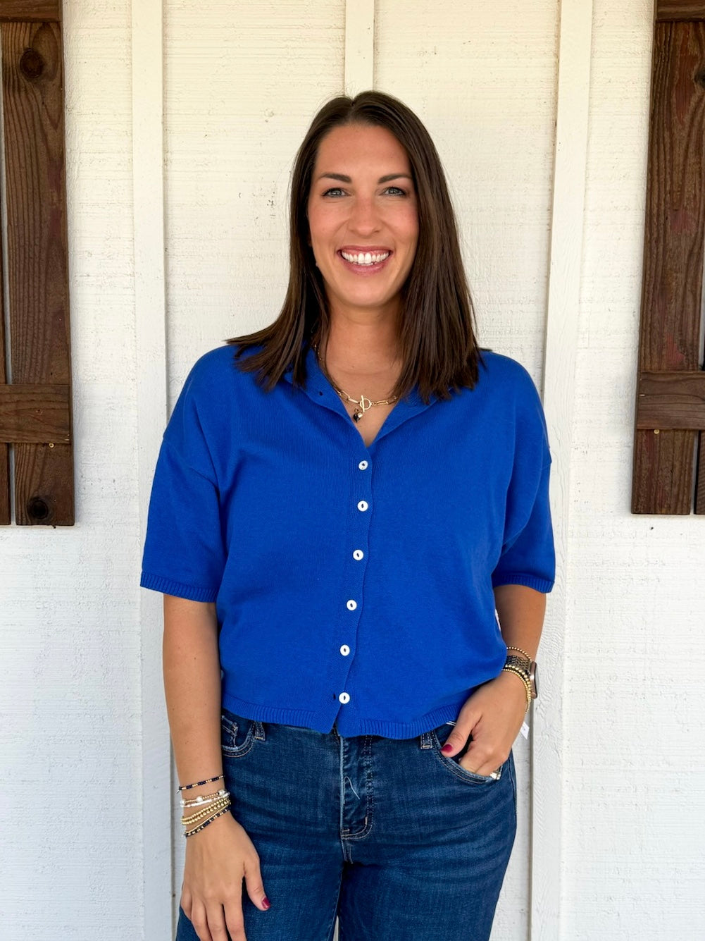 Get ready to fall in love with The Logan Cardigan! This adorable short sleeve button down cardigan is as soft as it is stylish. Perfect for adding a touch of coziness and cuteness to any outfit, this cardigan is a must-have! Upgrade your wardrobe with The Logan Cardigan today!